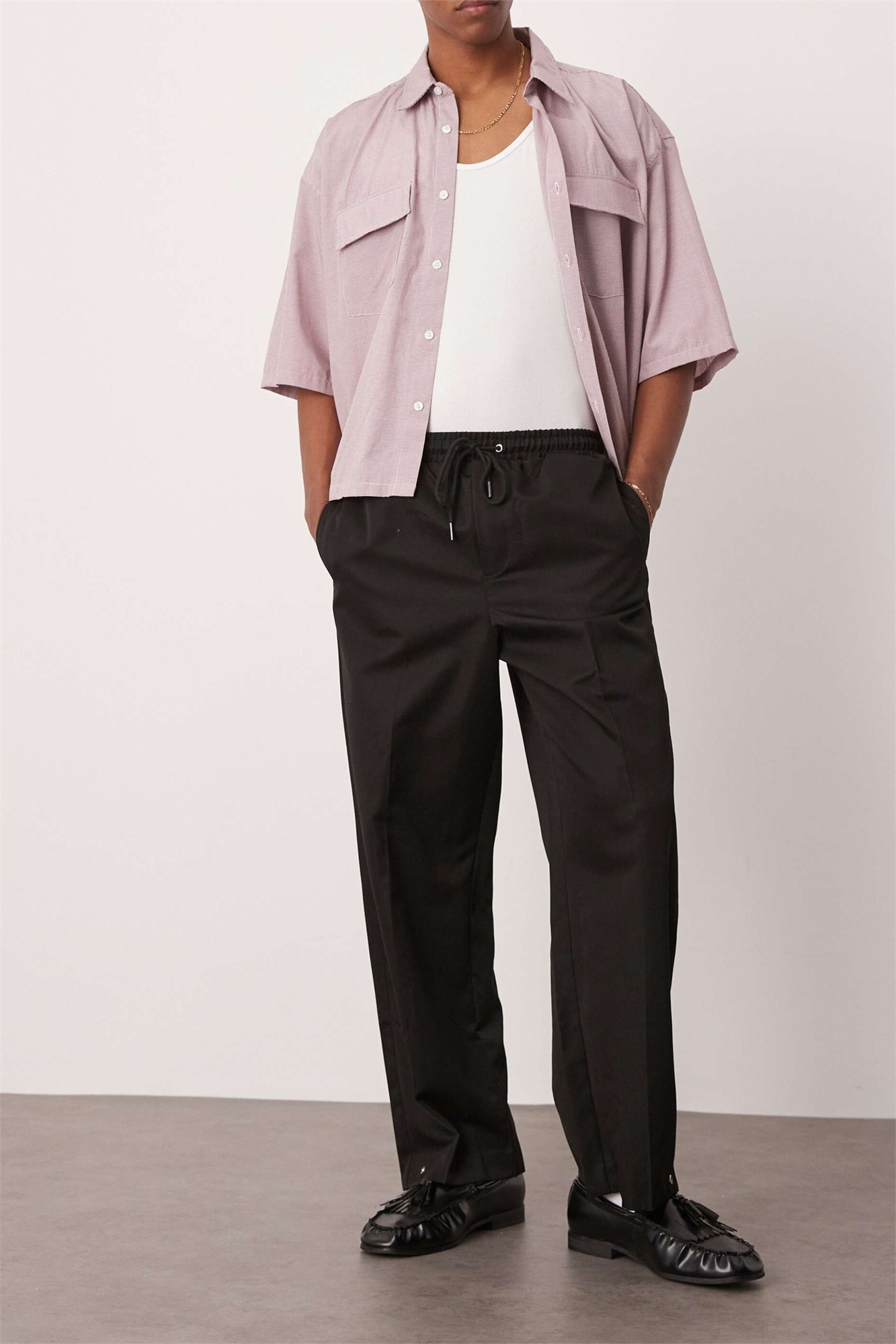 Брюки-кльош с застежками-кнопками на подоле