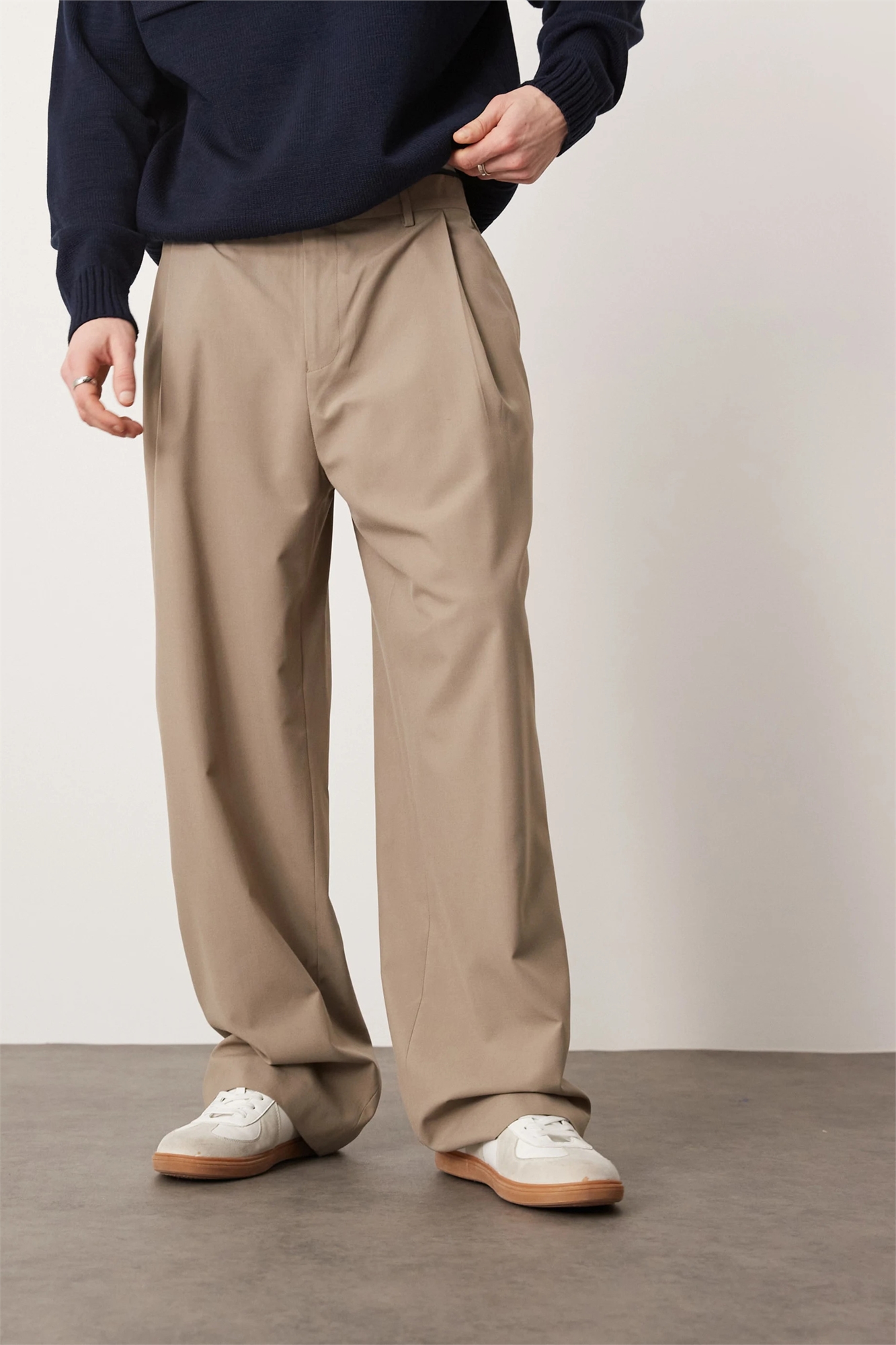 Стильные брюки с широкими брючинами и глубокой складкой