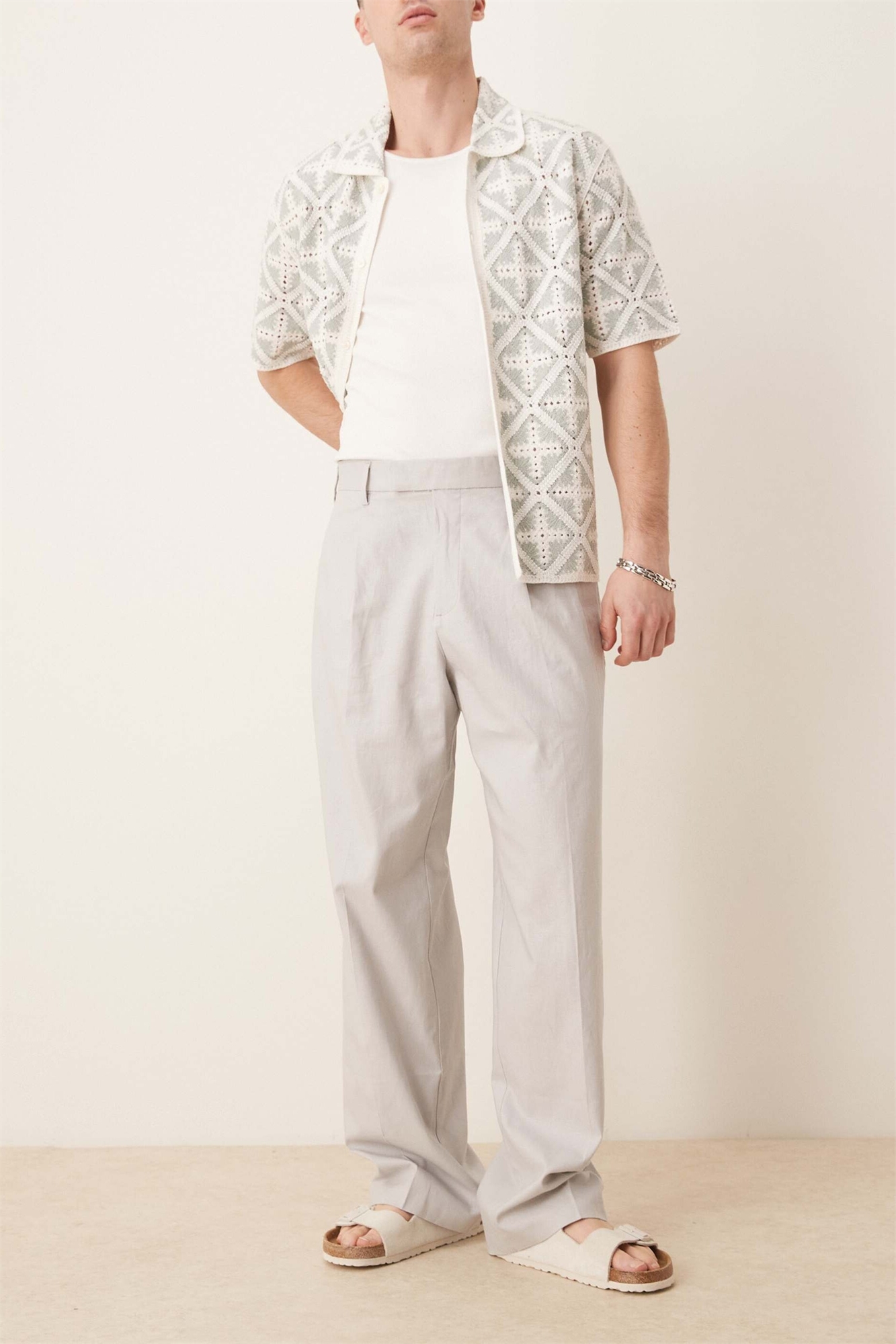 Стильные брюки из смешанного льна с широкими брючинами и складкой спереди