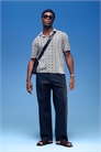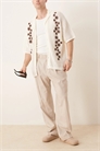 Изготовлено из льна, дышащей ткани с неровной текстурой. Основной материал: 50% лен, 48% вискоза, 2% эластан. Подкладка: 85% полиэстер, 15% хлопок.