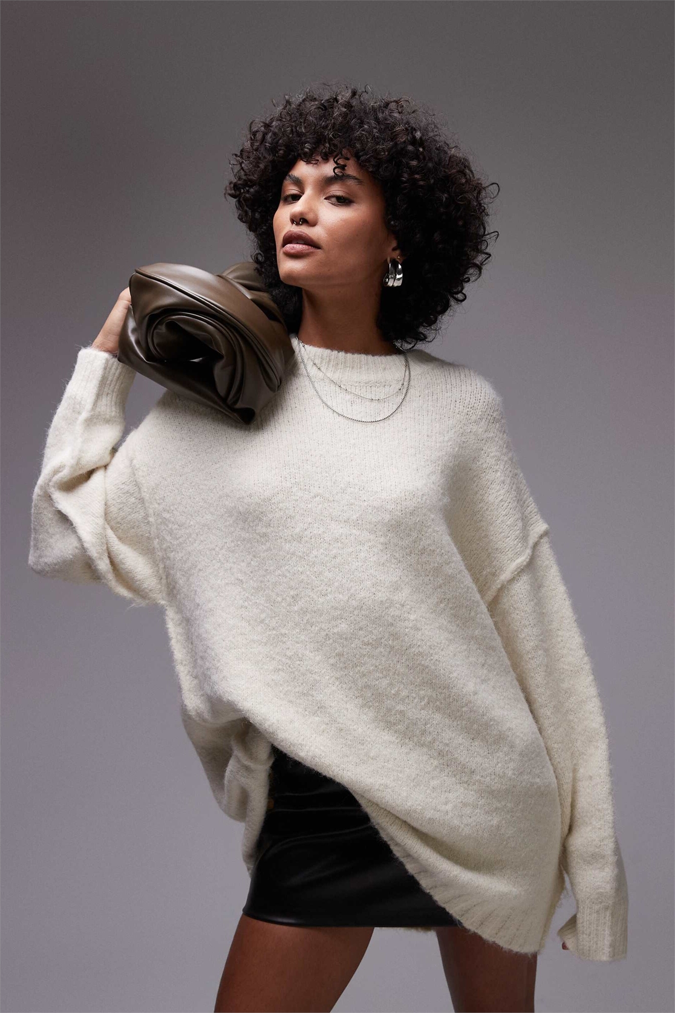 Длинный свитер с круглым вырезом из вязаного пушистого трикотажа