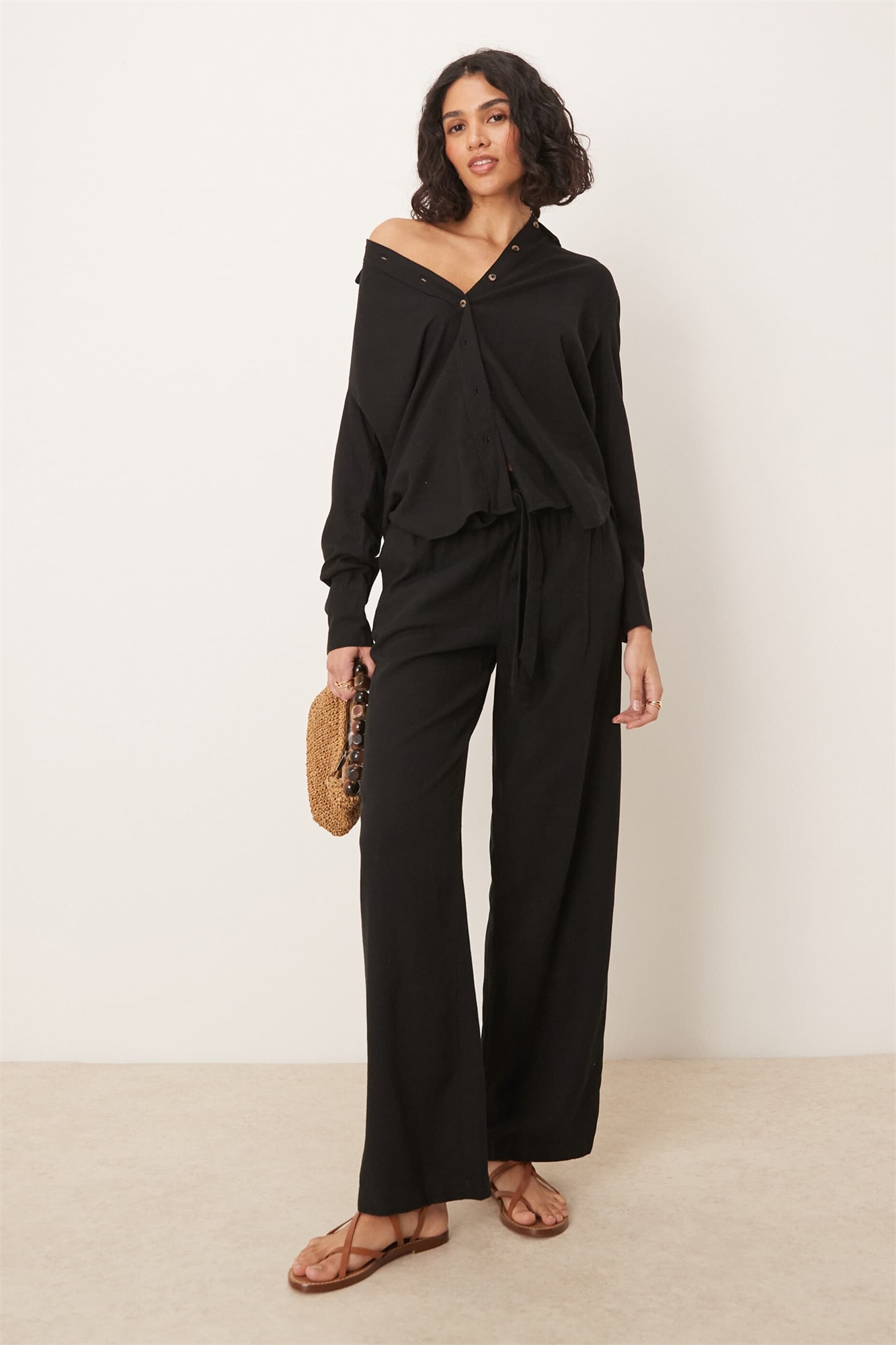 Брюки из смешанного льна с широкими брючинами и поясом co-ord