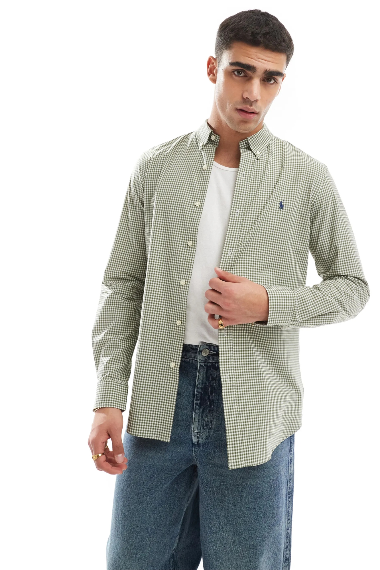 Рубашка из эластичного поплина с логотипом в виде значка, приталенный крой, клетчатый узор «гингем»
