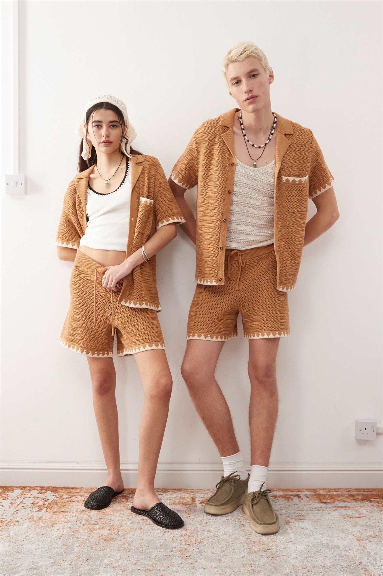 Универсальная вязаная рубашка свободного кроя с короткими рукавами