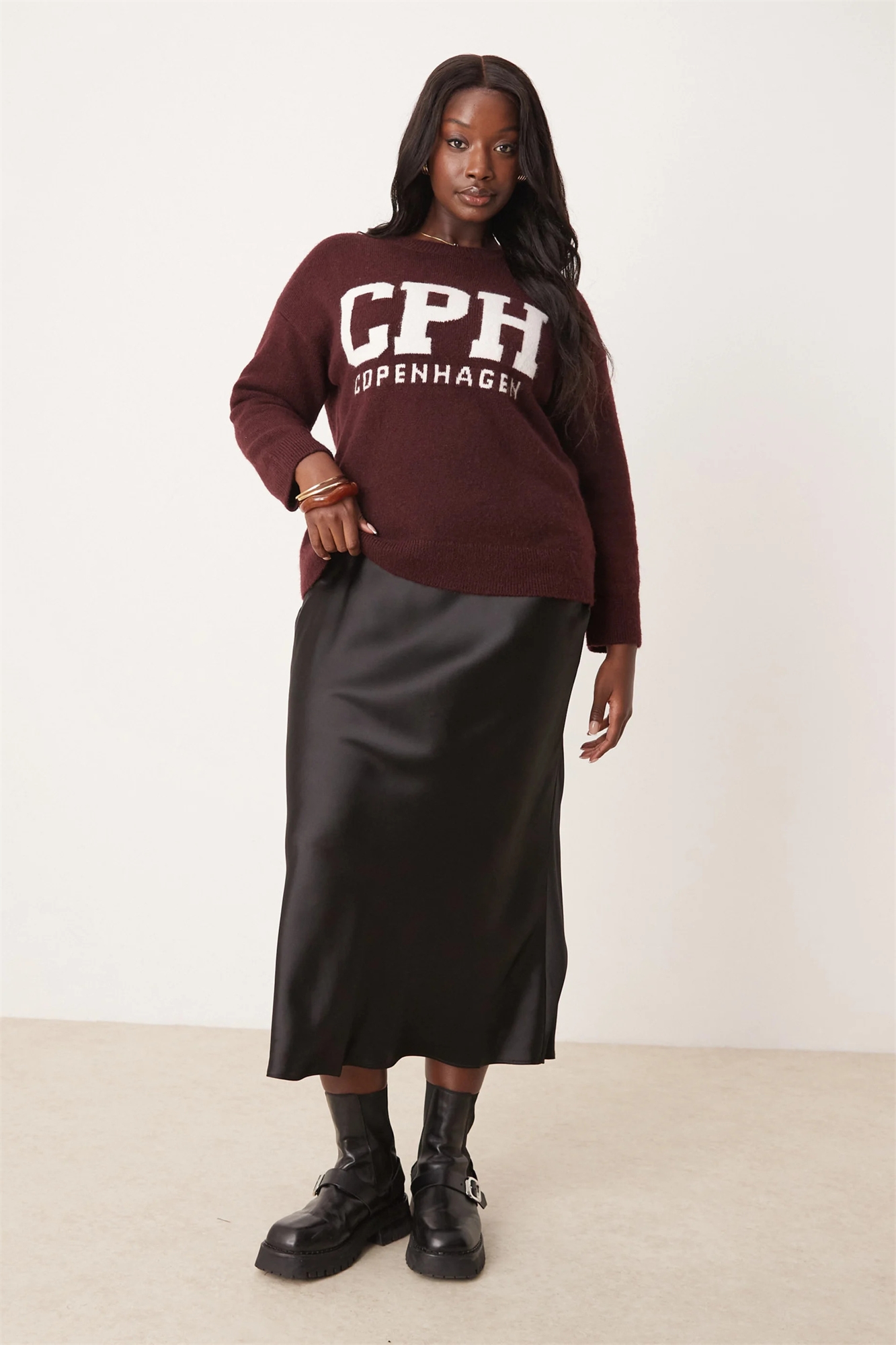Юбка средней длины из атласа New Look Curve с косой отстрочкой