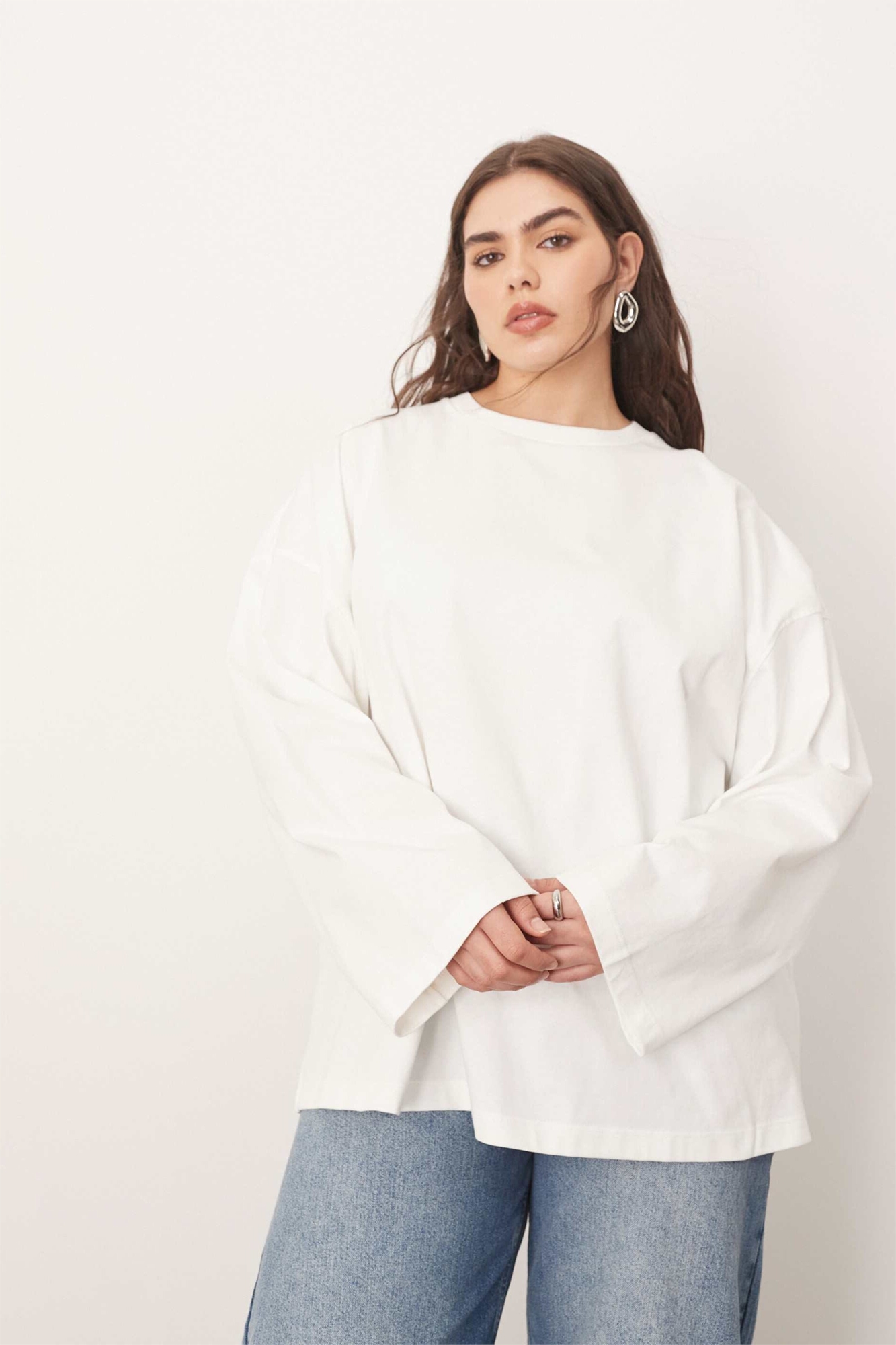 Хлопковая футболка свободного кроя с длинными рукавами
