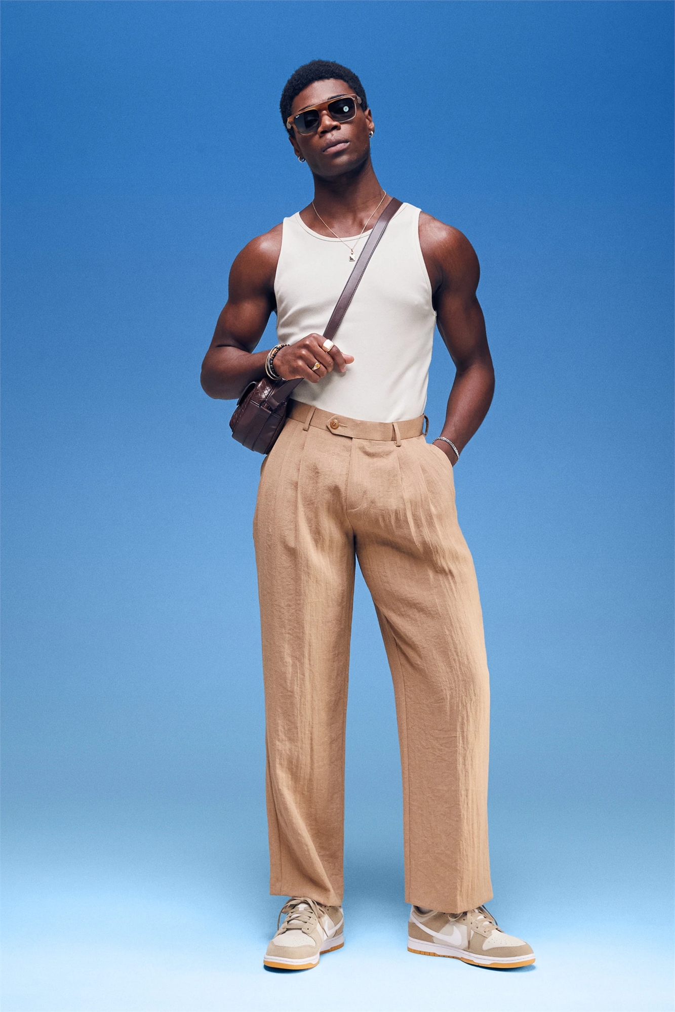 Рост модели: 188 см / 6 футов 2 дюйма На модели: размер 32 по ширине, 32 по длине