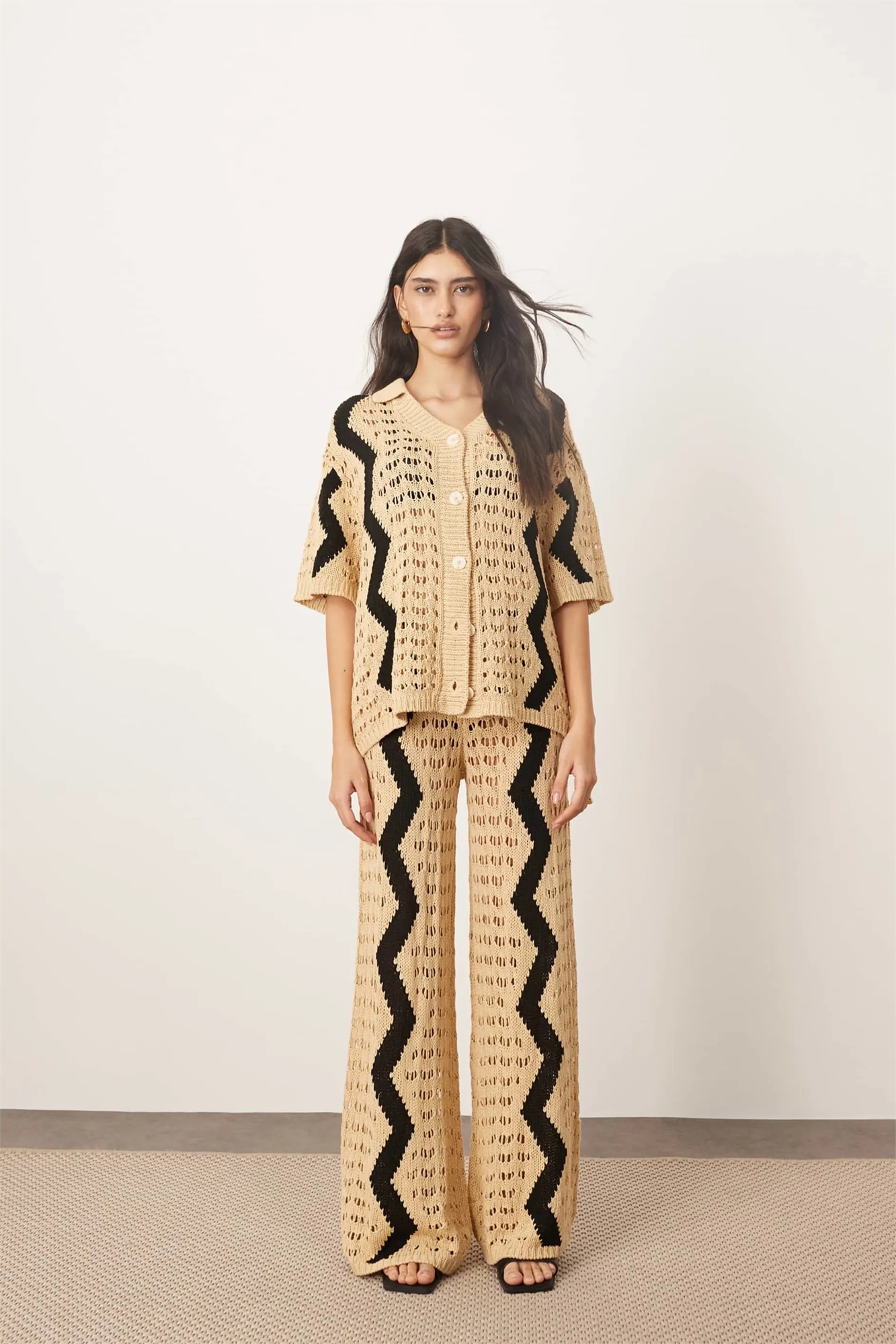Трикотажные брюки с широкими брючинами и зигзагообразным узором co-ord