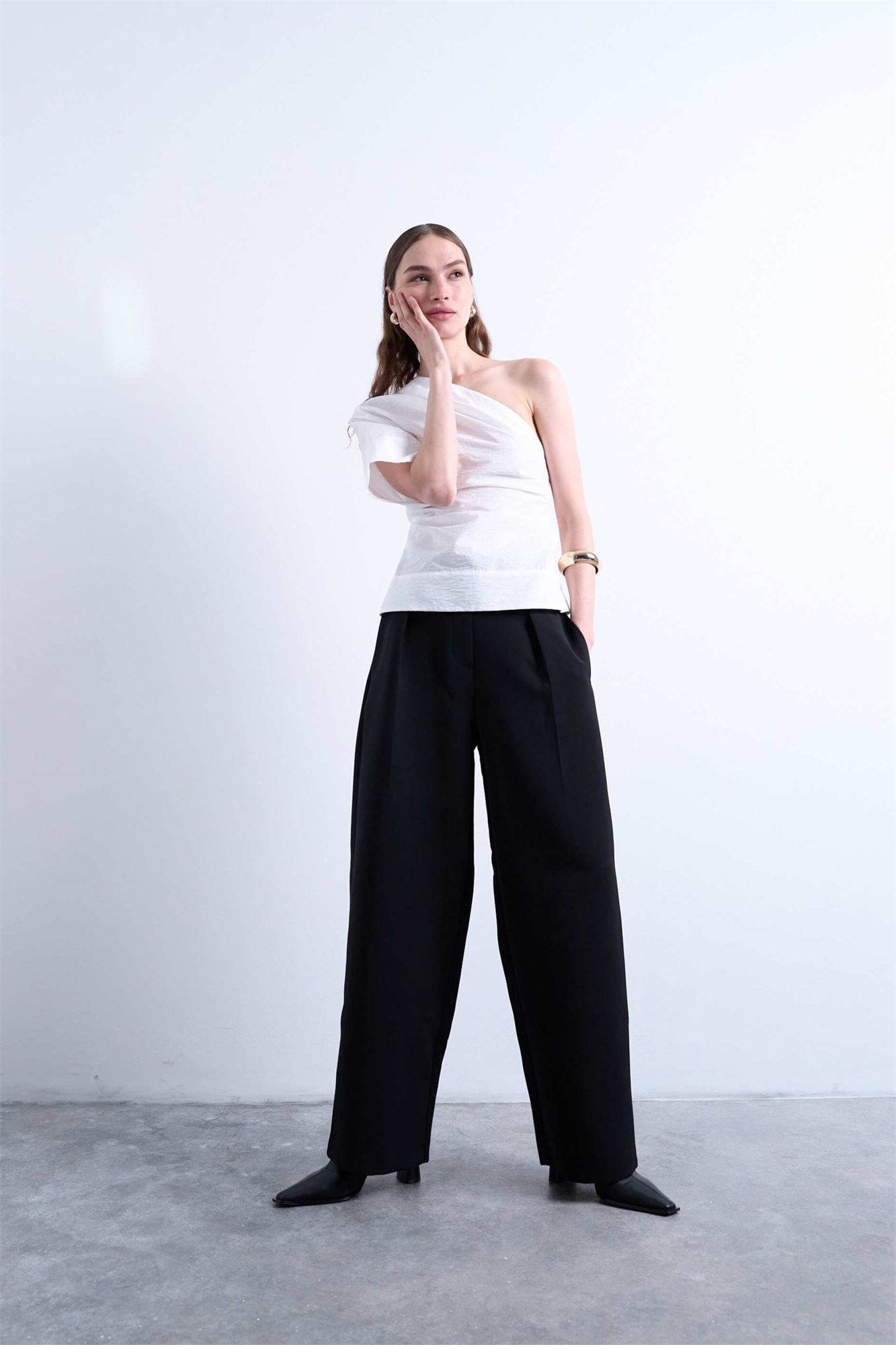 Брюки с заниженной талией и свободным кроем, с аккуратной резинкой на талии
