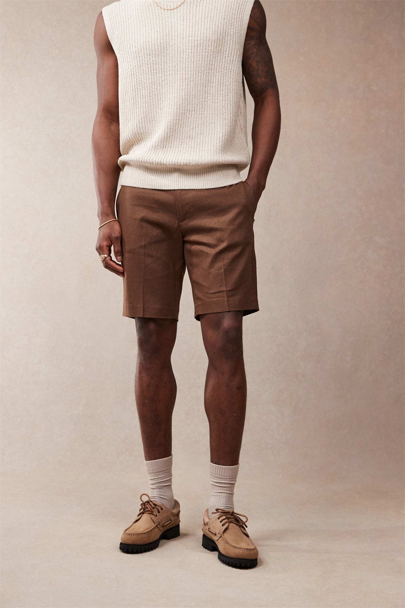 Стильные шорты из смесовой ткани с льняной вставкой, облегающего кроя
