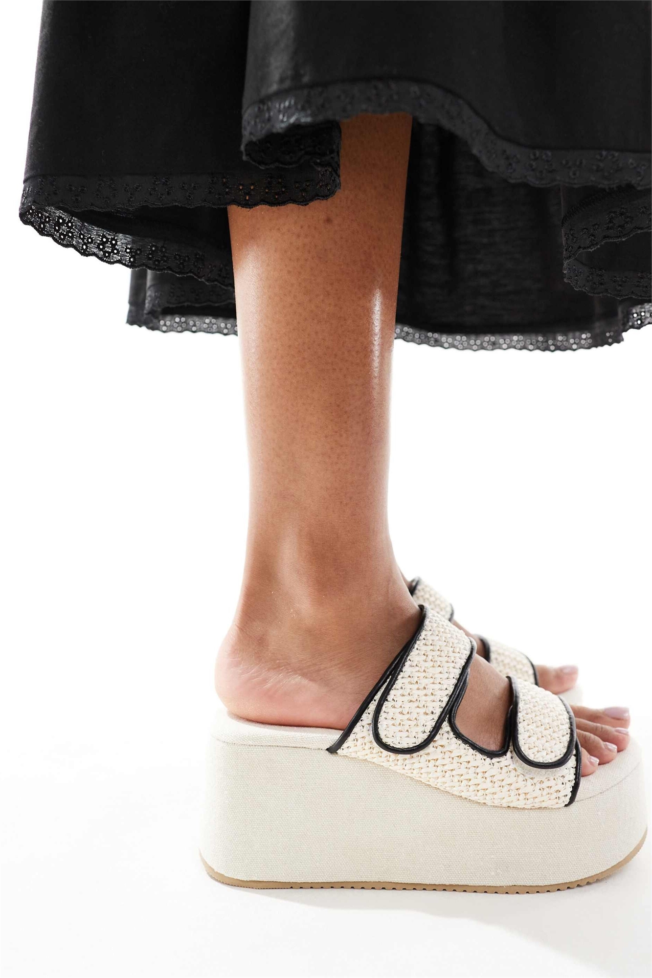 Мули на плоской платформе с плетеными элементами в подростковом стиле