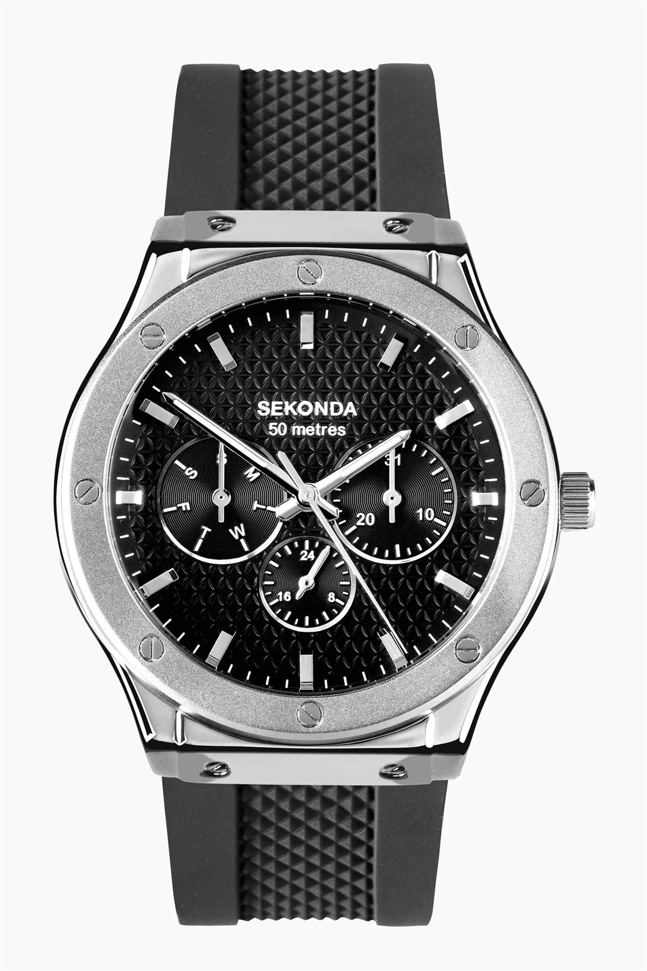 Мужские аналоговые часы Titan диаметром 42 мм с серебристым корпусом, силиконовым ремешком и черным циферблатом
