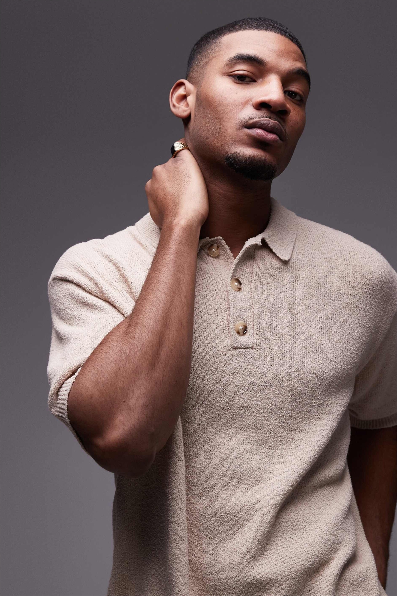 Трикотажная рубашка из букле с застежкой на пуговицы