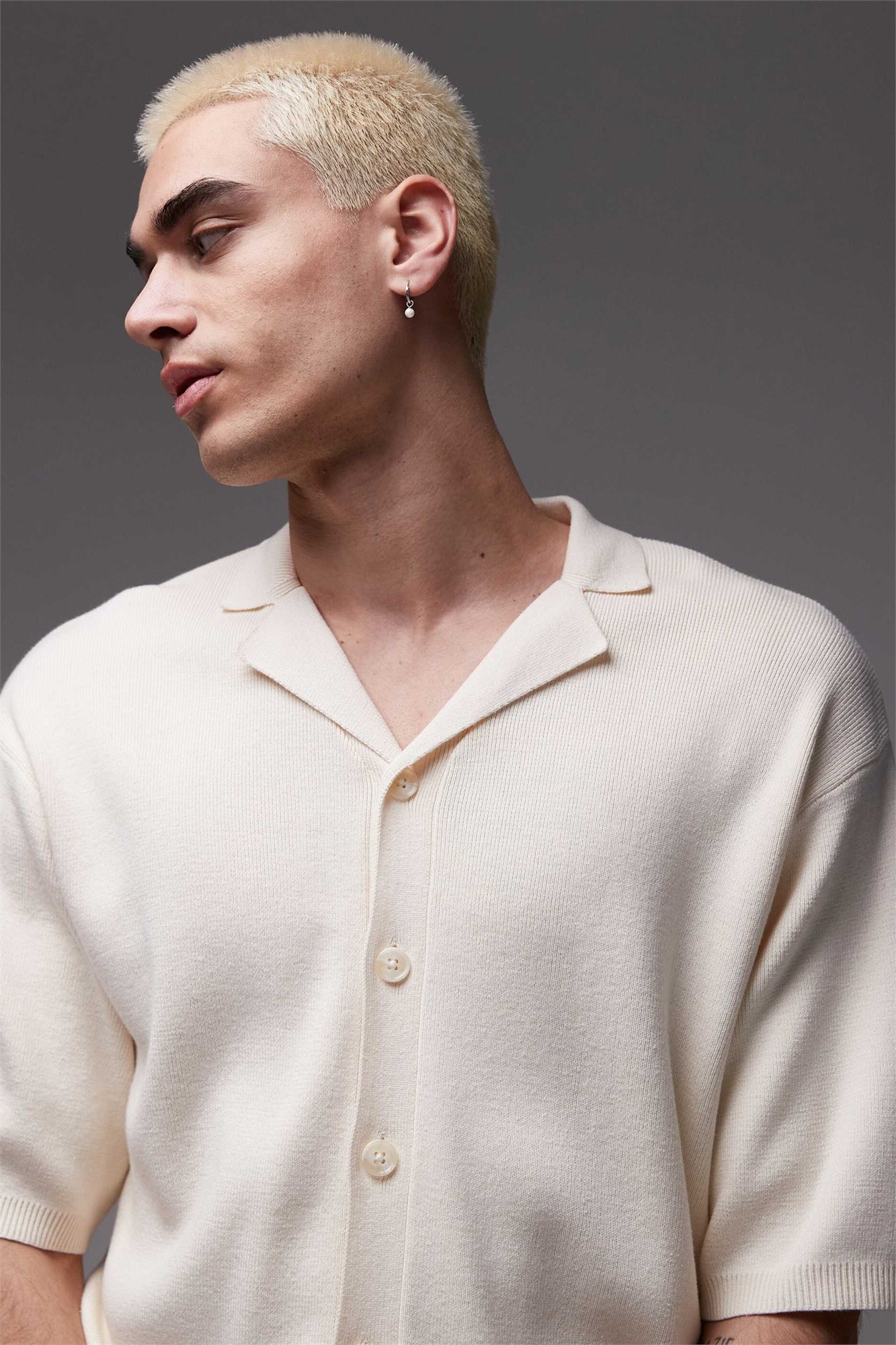 Вязаное поло с отложным воротником цвета экрю