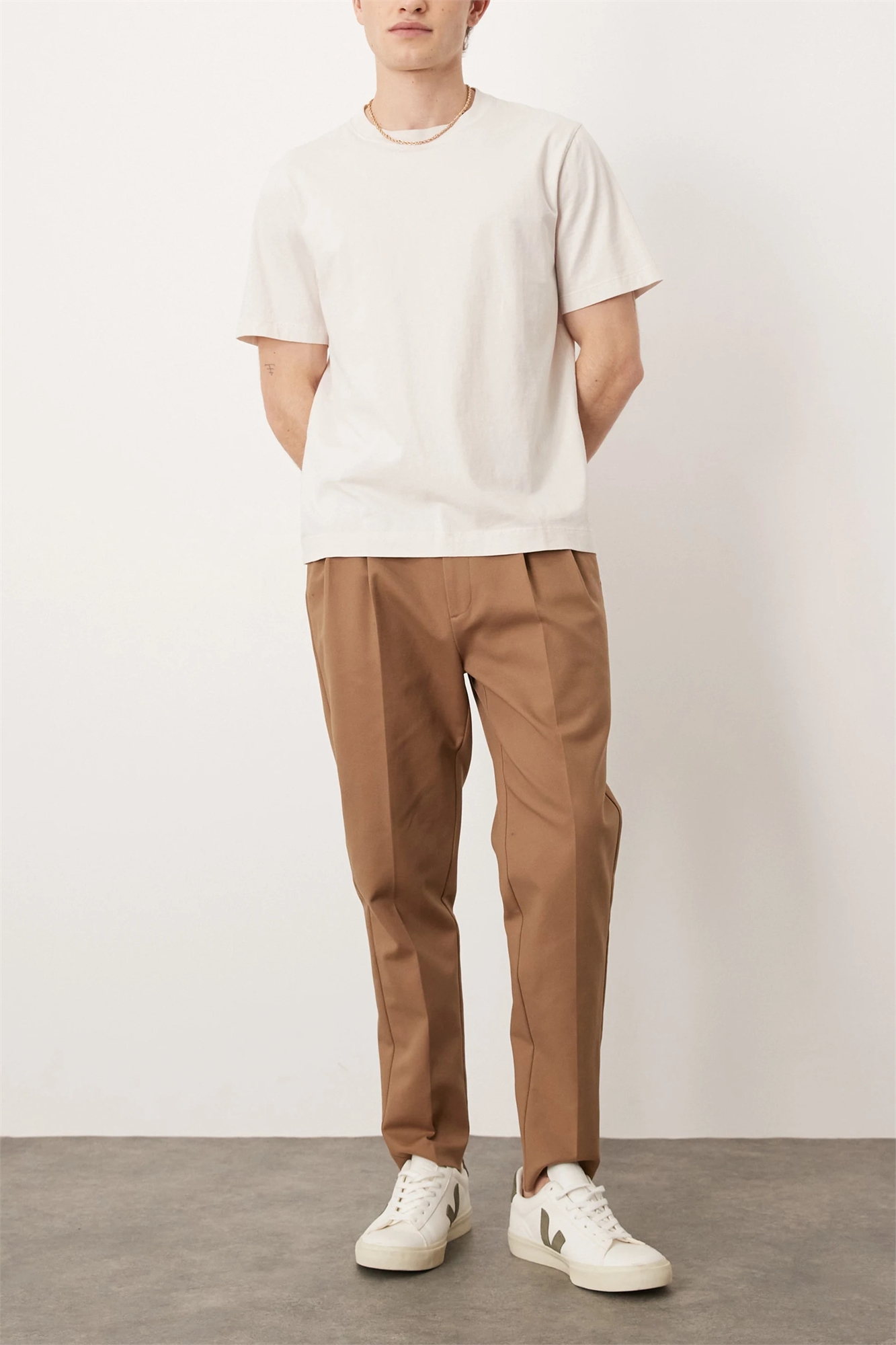 Стильные зауженные хлопковые брюки-чино