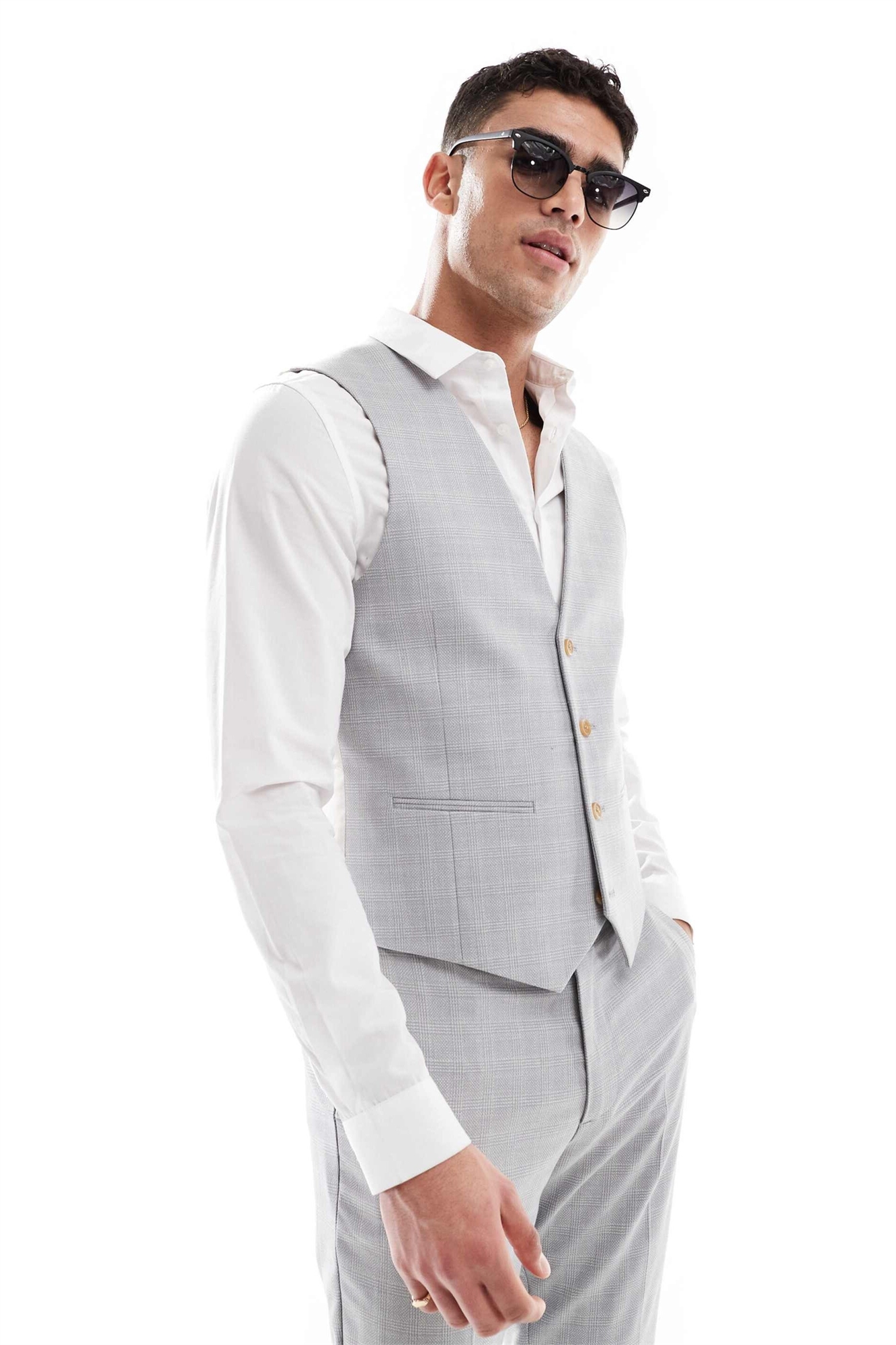 Жилет из смешанного льна с узором в клетку серого цвета