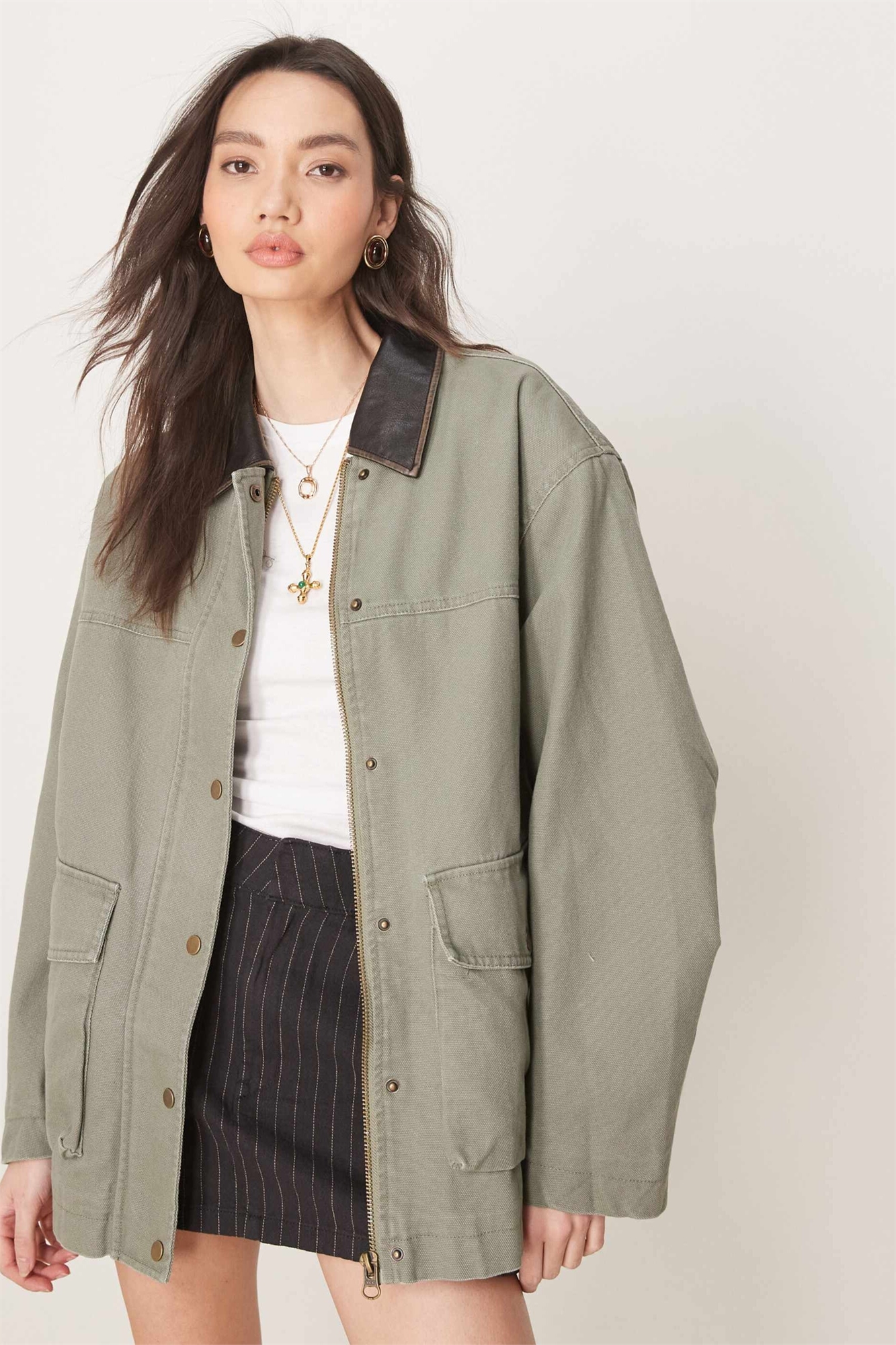 Куртка свободного кроя с эффектом вымытости и воротником под кожу