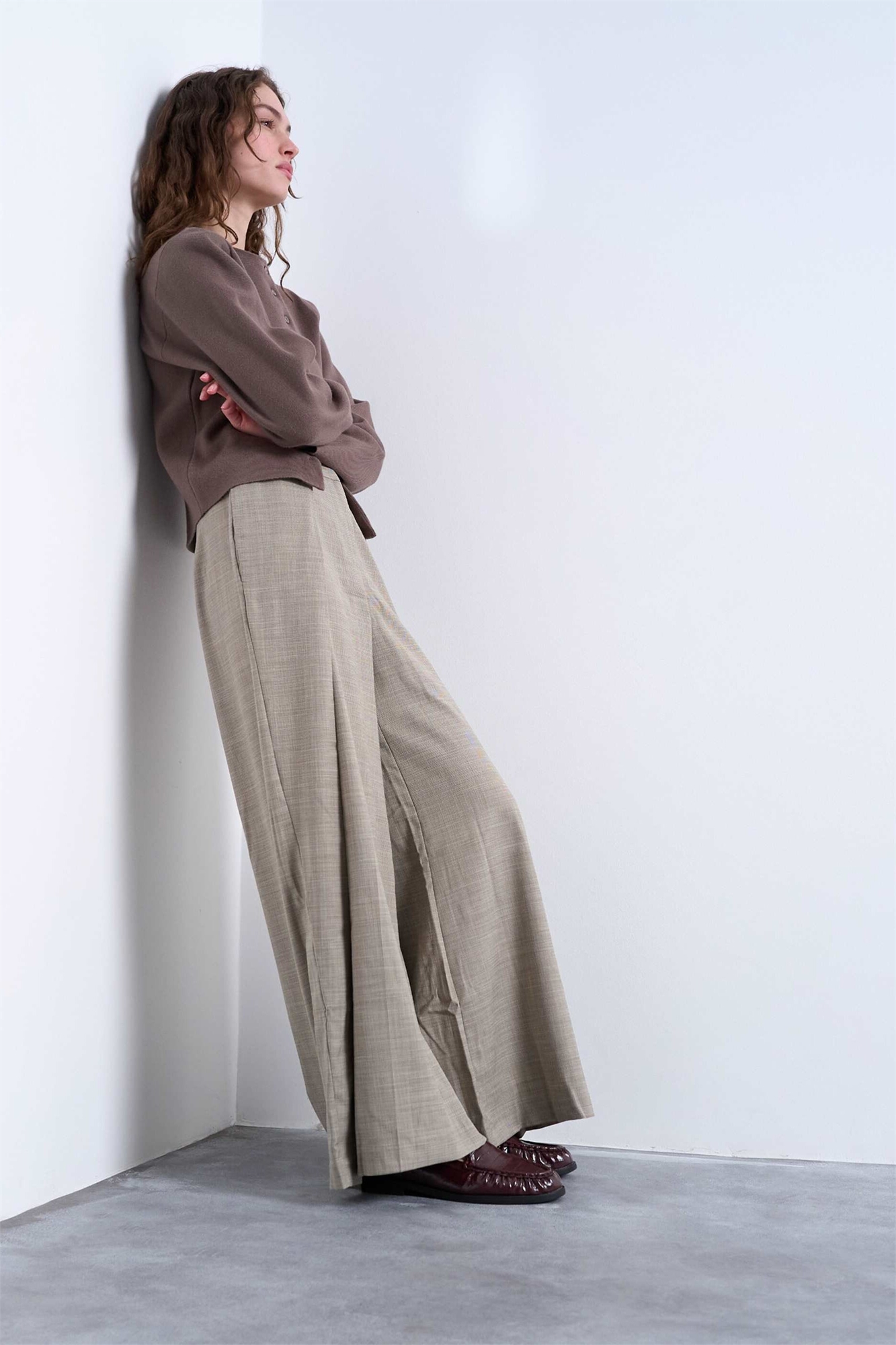 Брюки премиум-класса с завышенной талией и экстремально широкими брючинами, скроенные по фигуре
