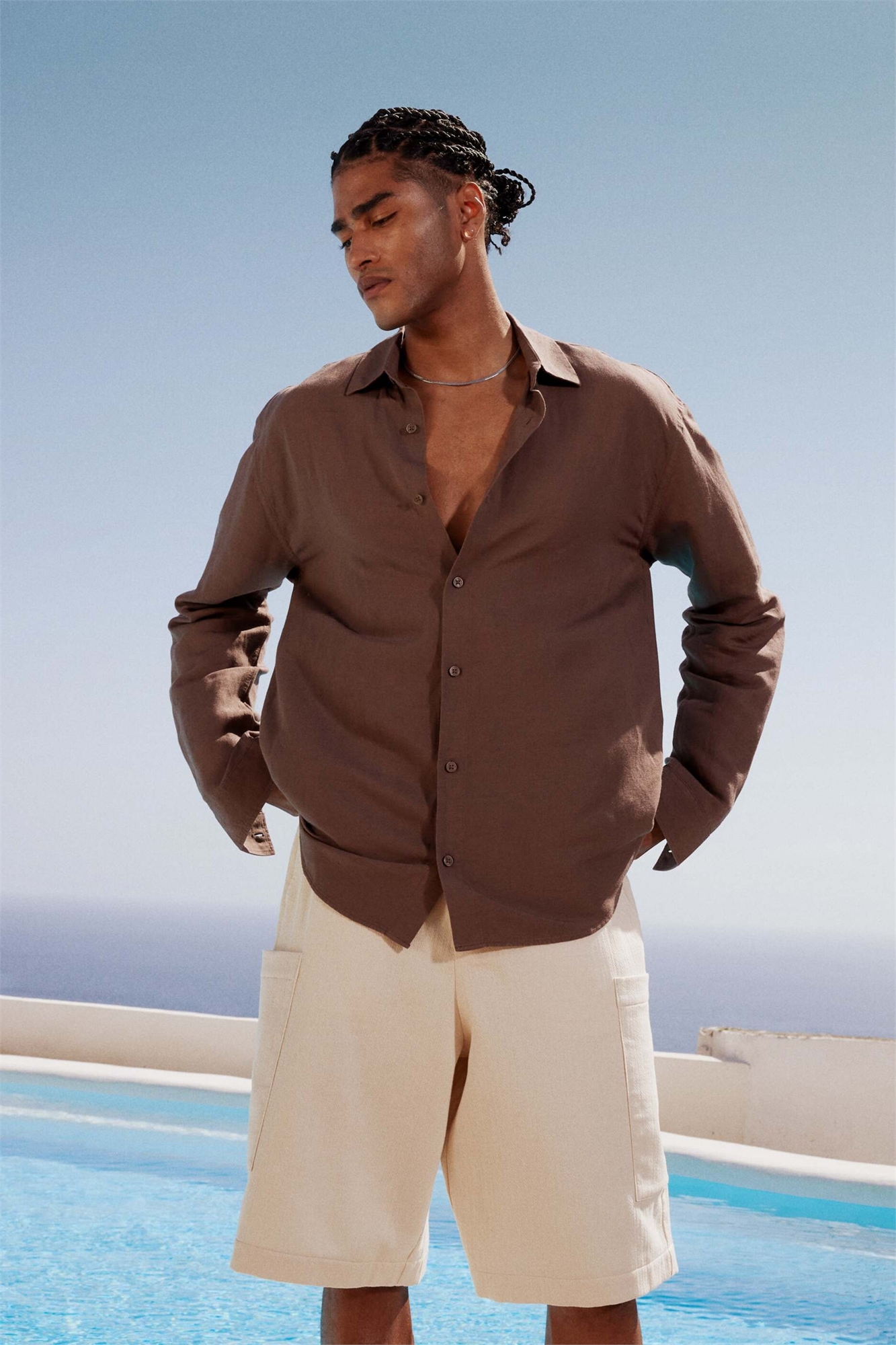 Рубашка из льна с длинными рукавами и прямым кроем
