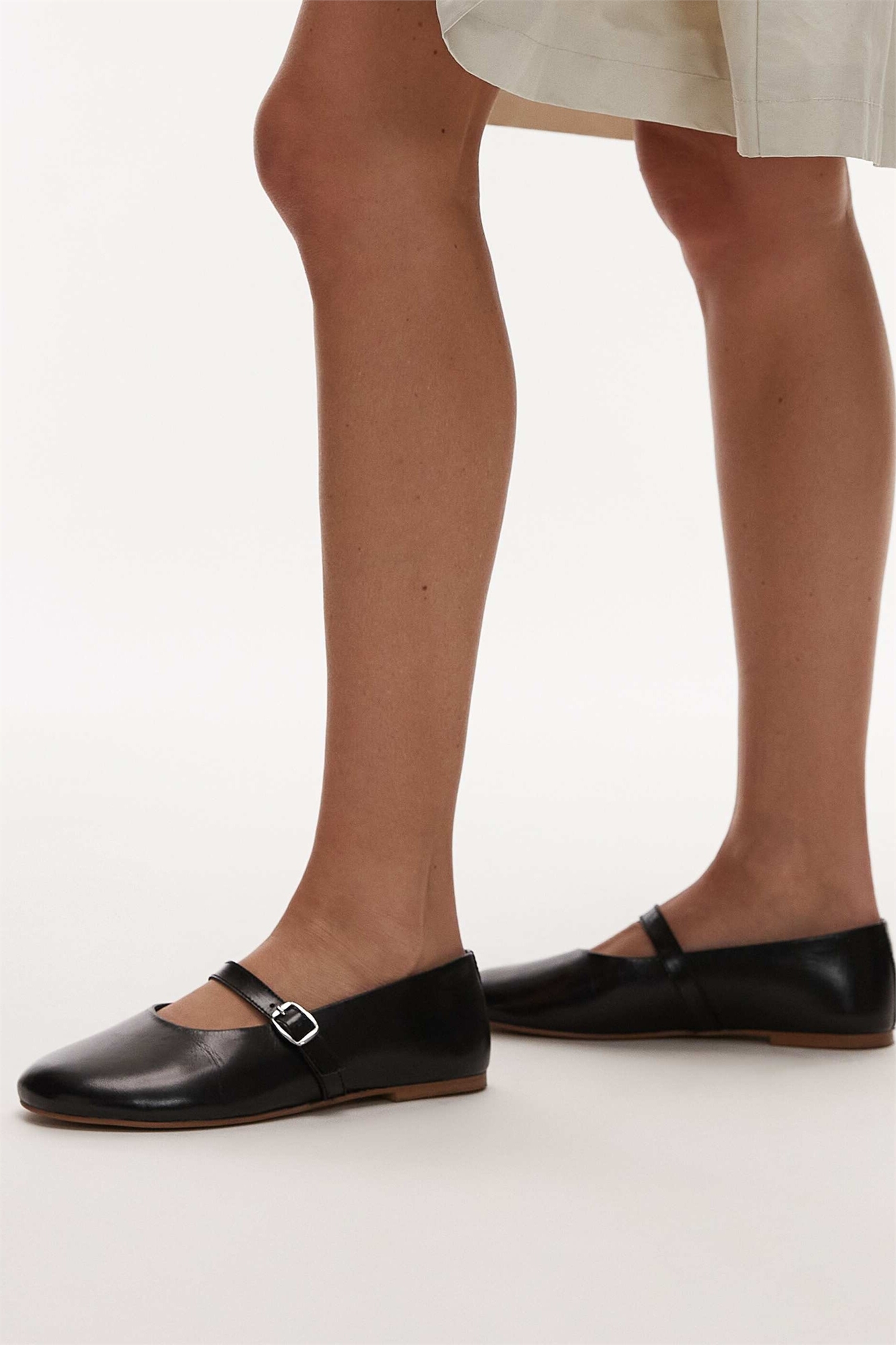 Балетки из натуральной кожи цвета ясеня с рюшами и пряжкой