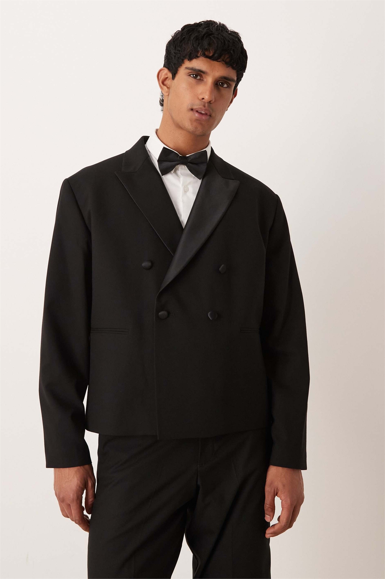 Двубортный костюм прямого кроя с пиджаком-смокингом