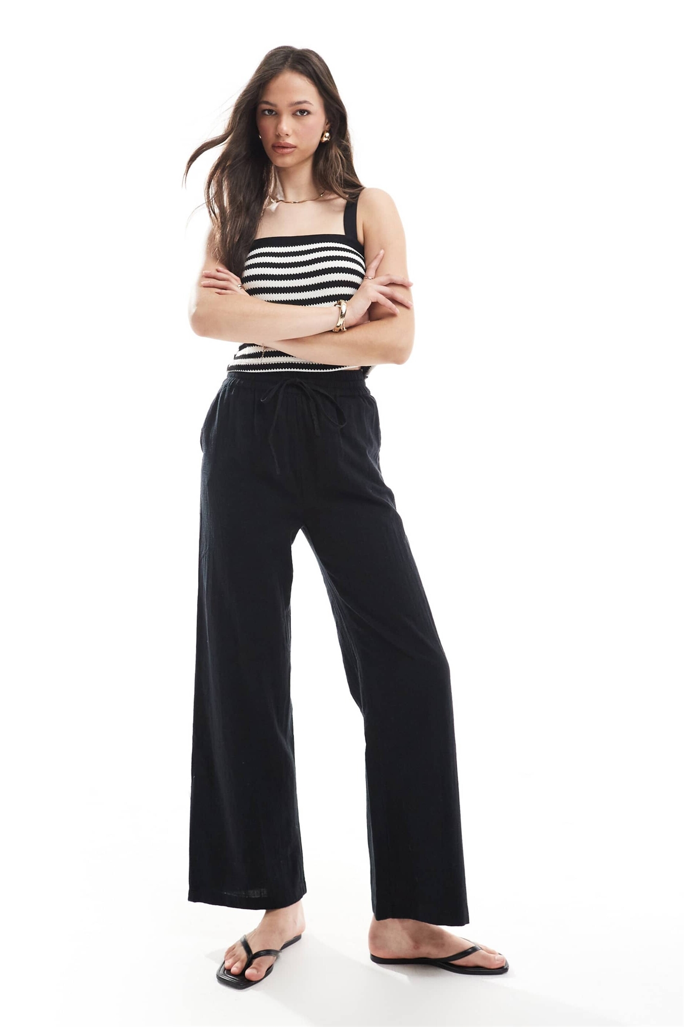 Брюки с широкими брючинами из ткани под лен