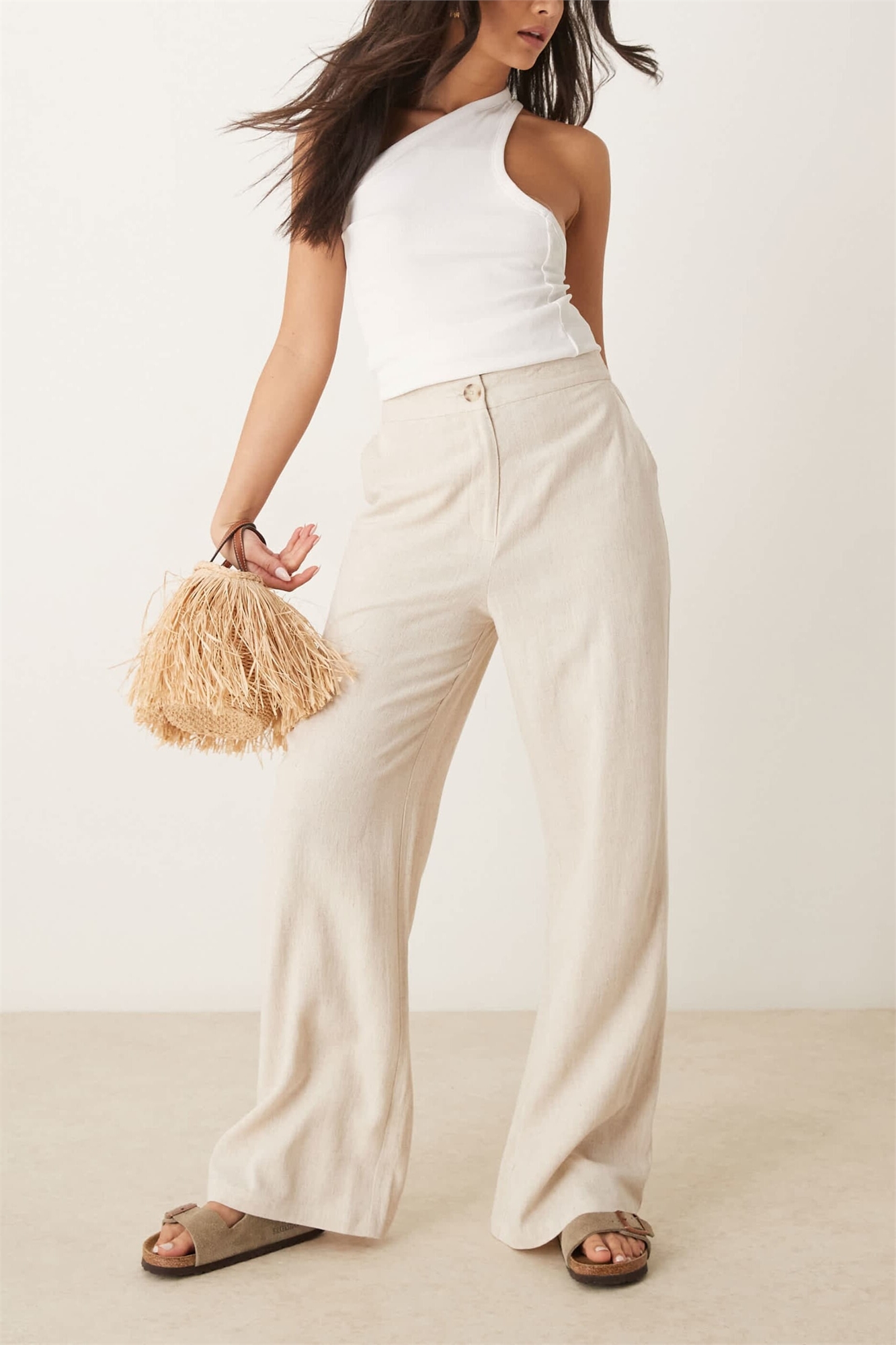 Брюки свободного кроя с прямыми брючинами из льна