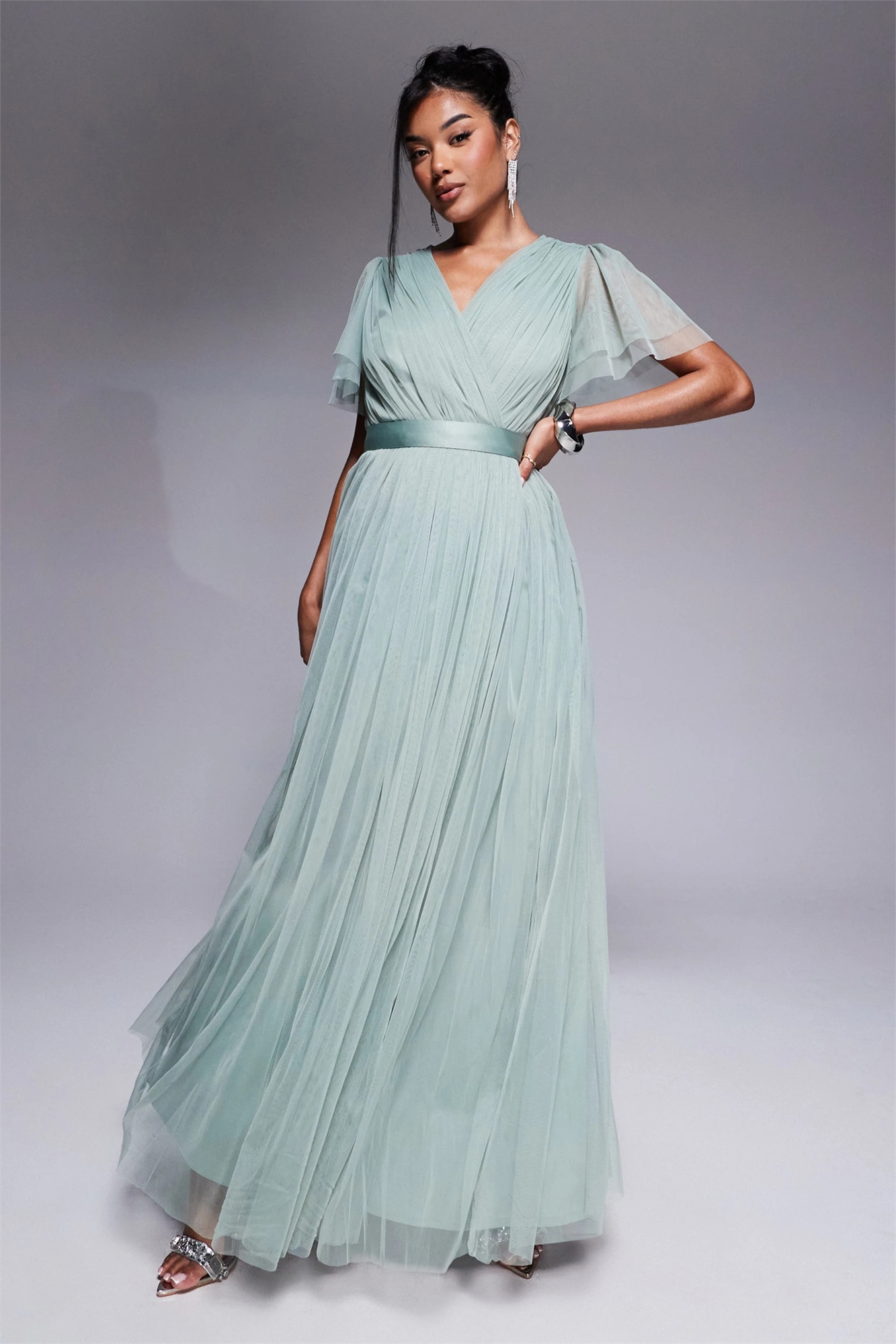Макси-платье для подружки невесты с имитацией запаха и короткими рукавами