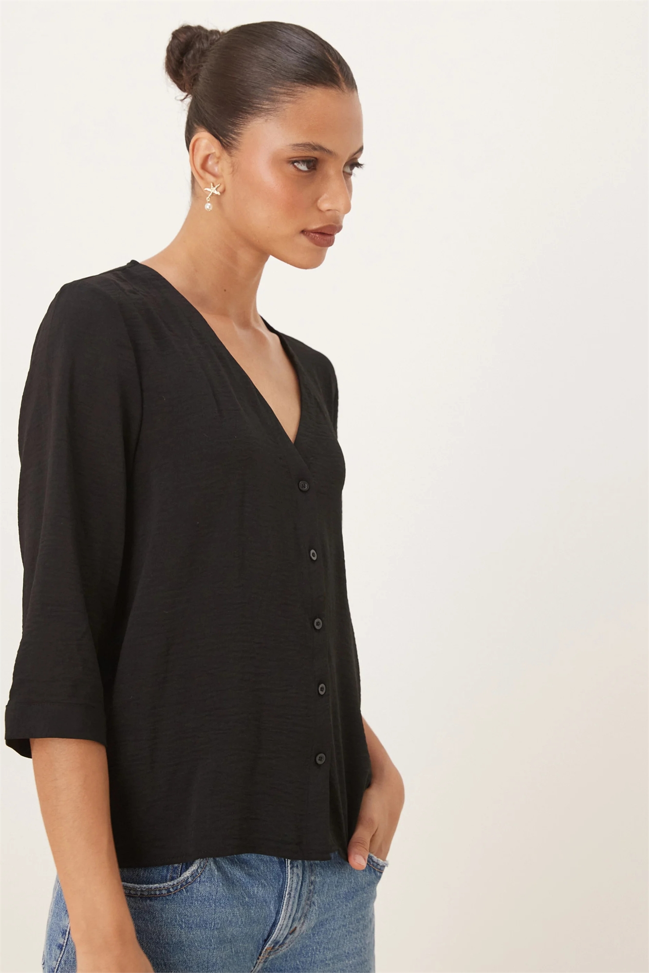 Рубашка с текстурными рукавами длиной 3/4