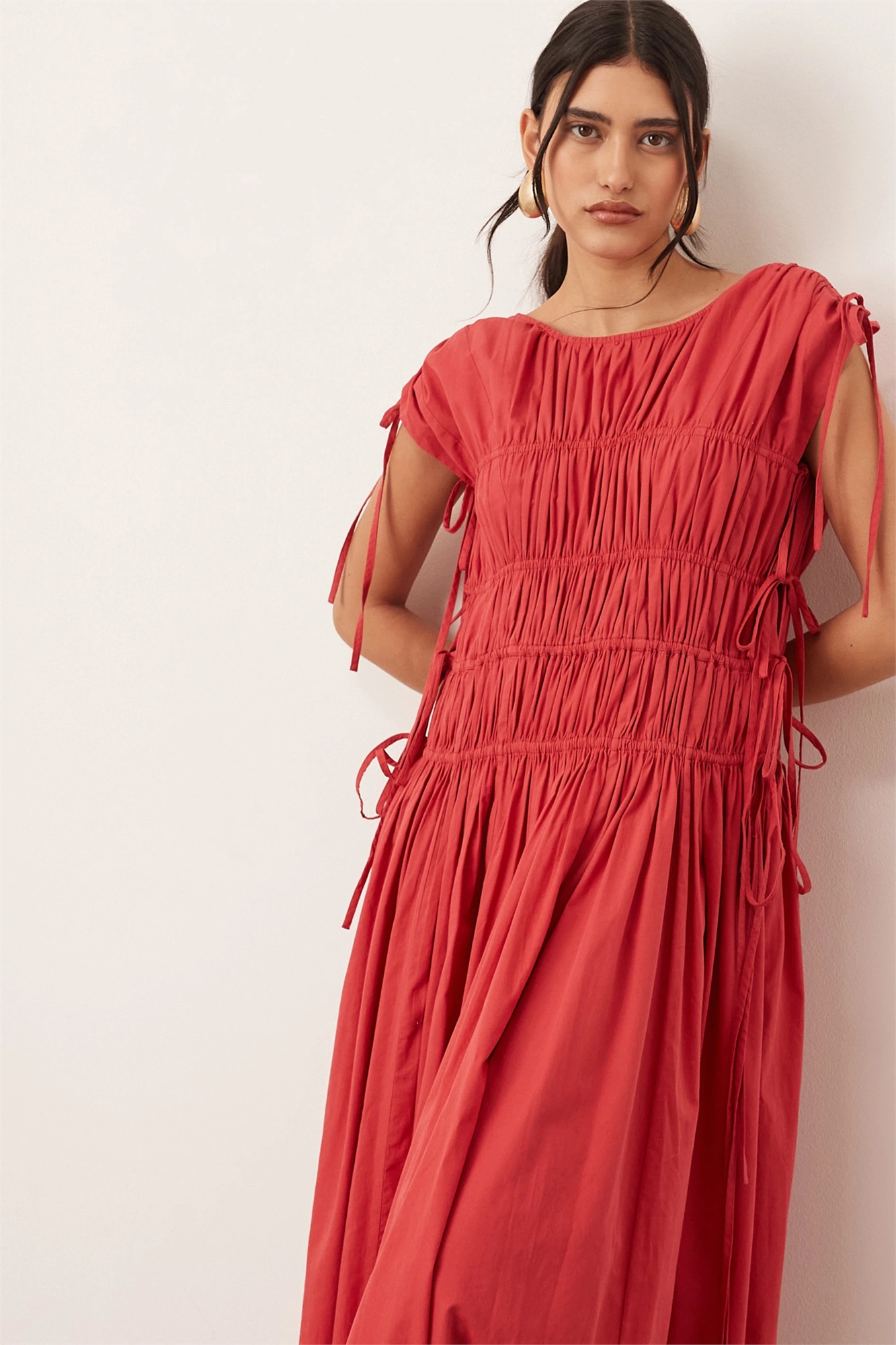 Прямое платье средней длины из чистого хлопка с завязками на талии и карманами