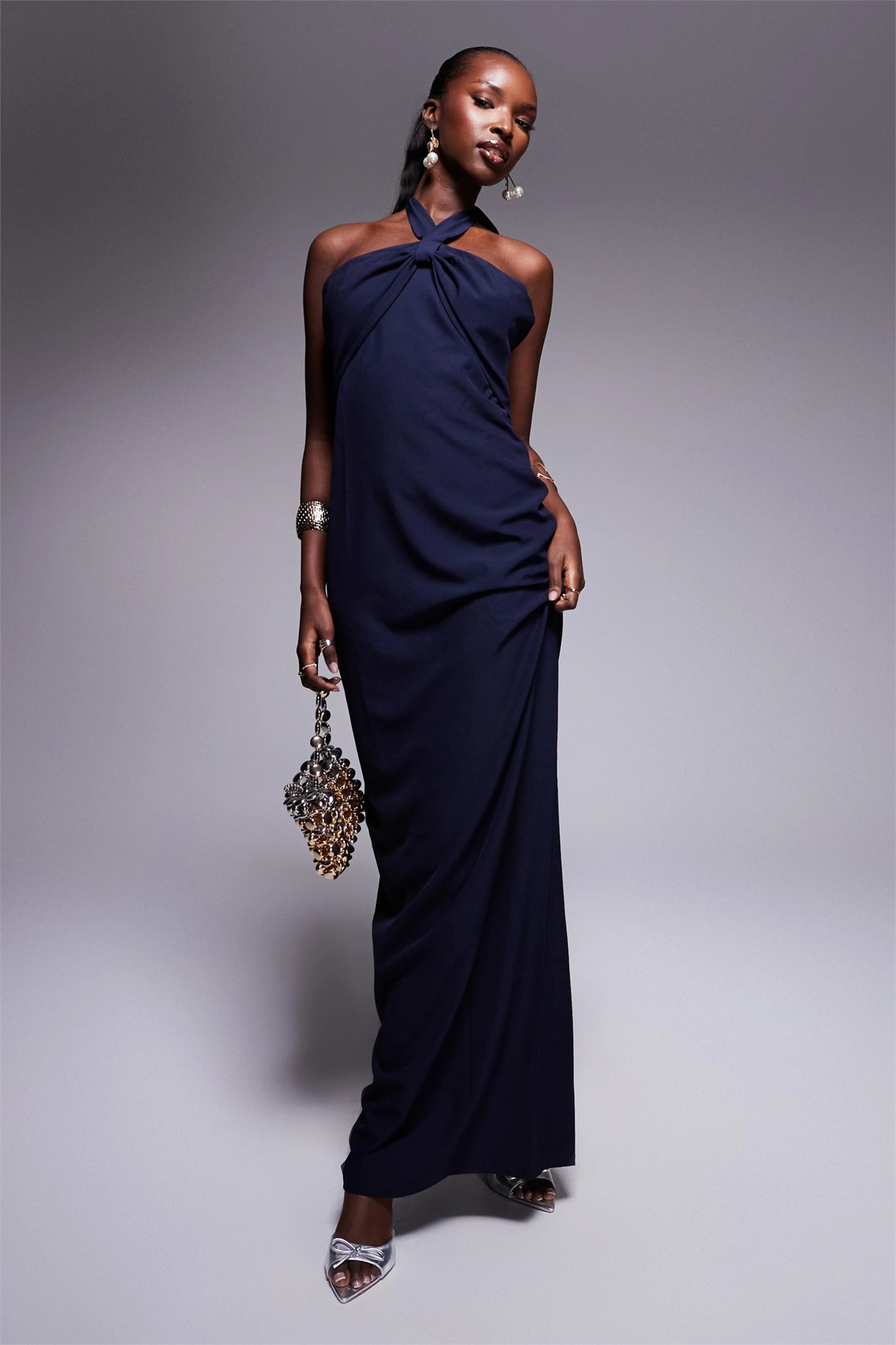 Макси-платье с завязками на шее и бантиком