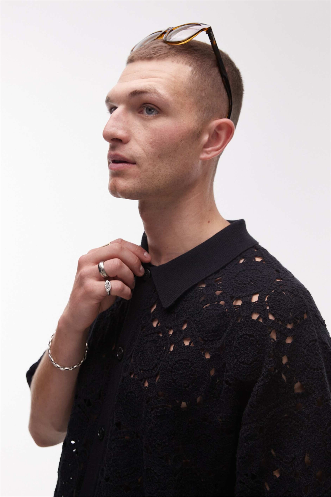 Рубашка из вязаного крючком полотна с расслабленным цветочным принтом