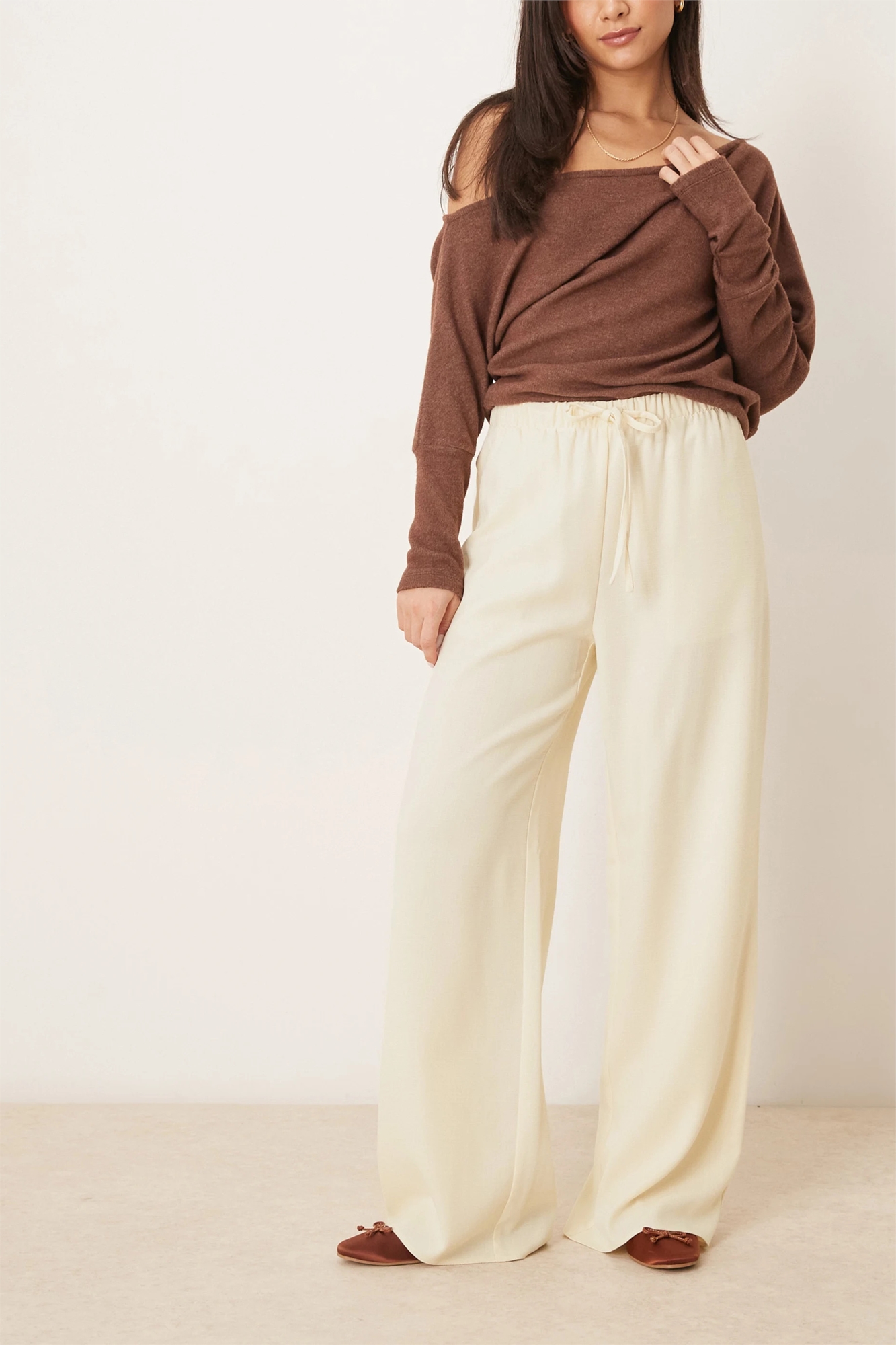 Брюки с завязкой на талии, выполненные в стиле «под льняную ткань»