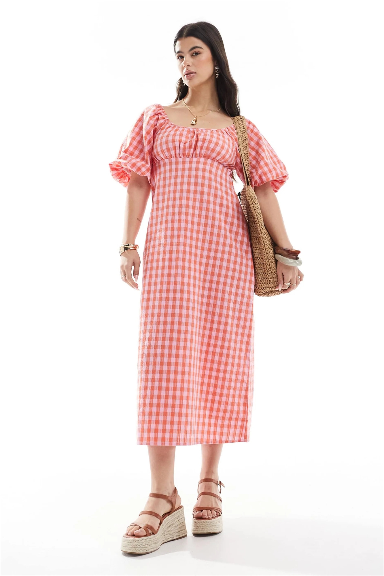 Платье в клетку с рукавами-буфетками от Milkmaid