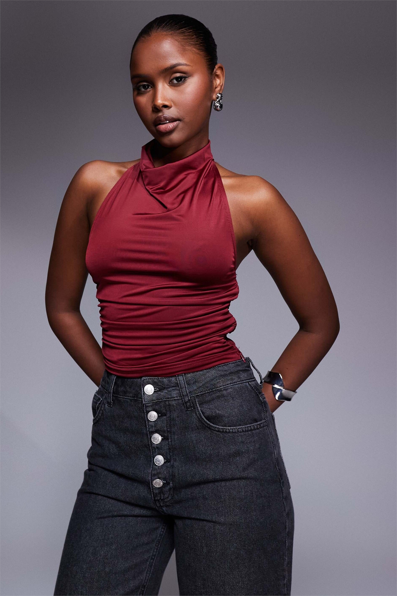 Топ-слинки с высоким воротником и завязками за шеей
