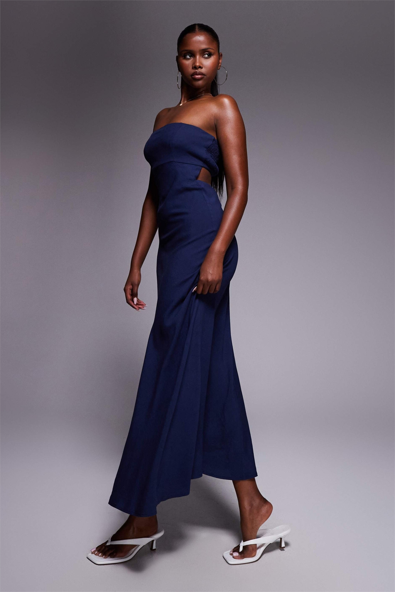 Макси-платье из льна от Yahir с бандо, сборками на спине и вырезом