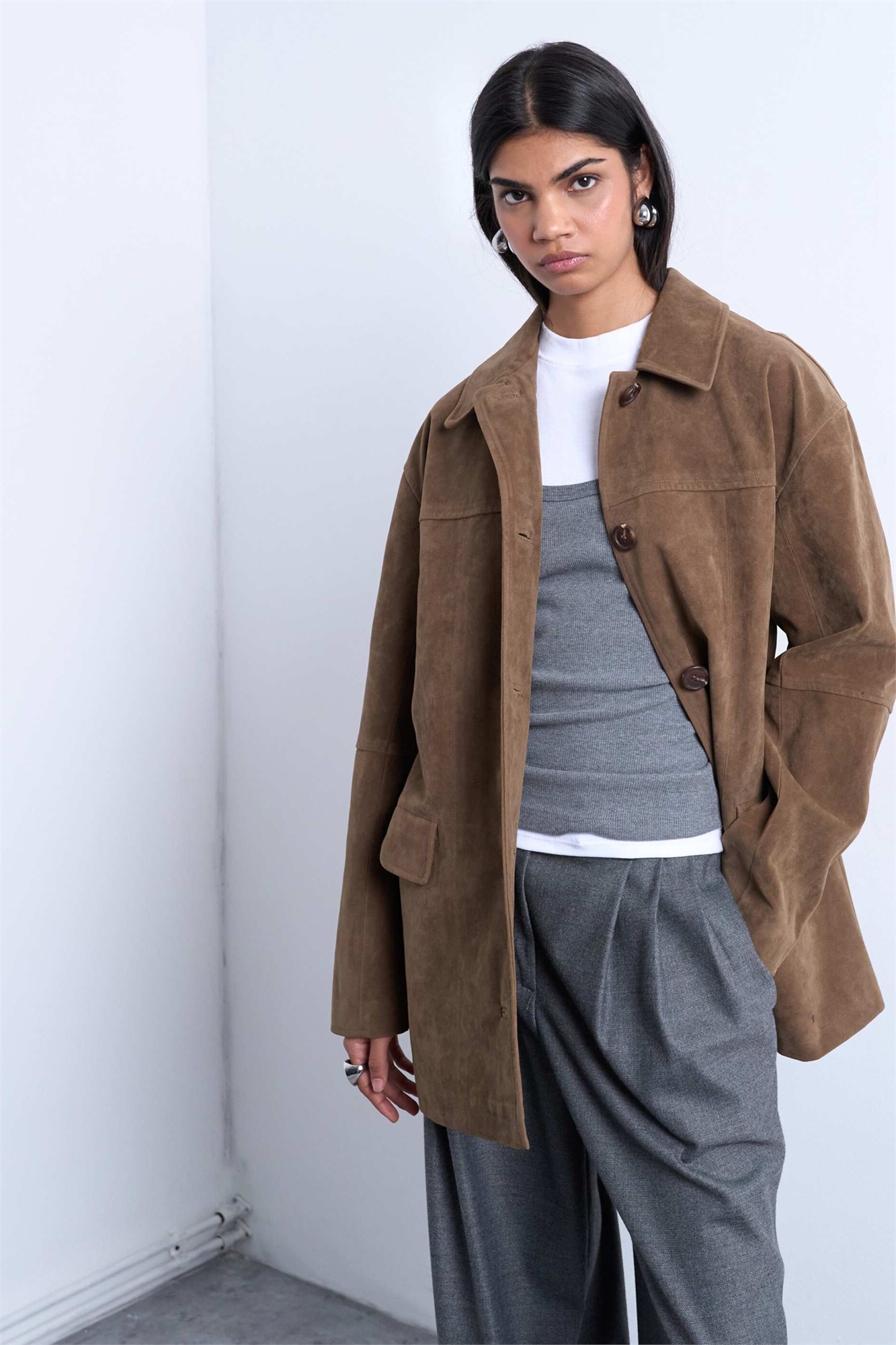 Куртка прямого кроя с накладными карманами из натуральной замши премиум-класса