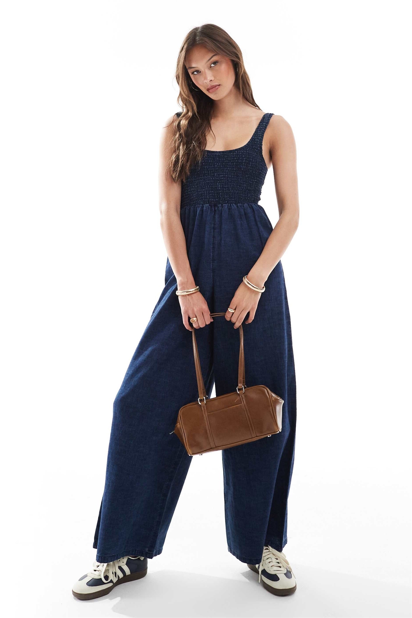 Комбинезон из мягкого денима с широкими брючинами и сборками на теле