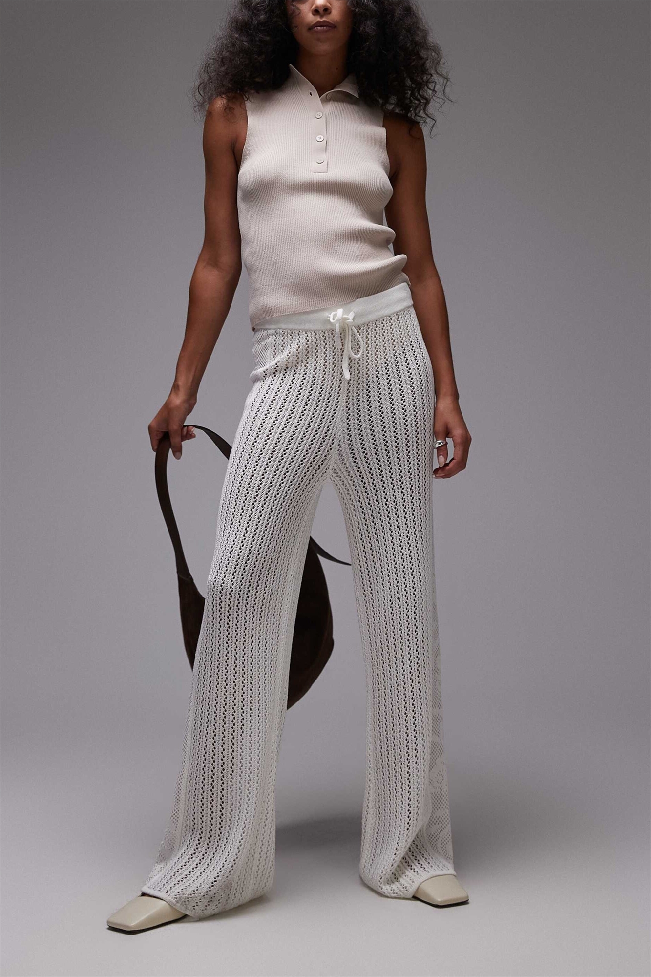 Вязание крючком: узор с эффектом ручной работы. Корпус: 100% акрил, резинка: 88% вискоза, 12% нейлон.