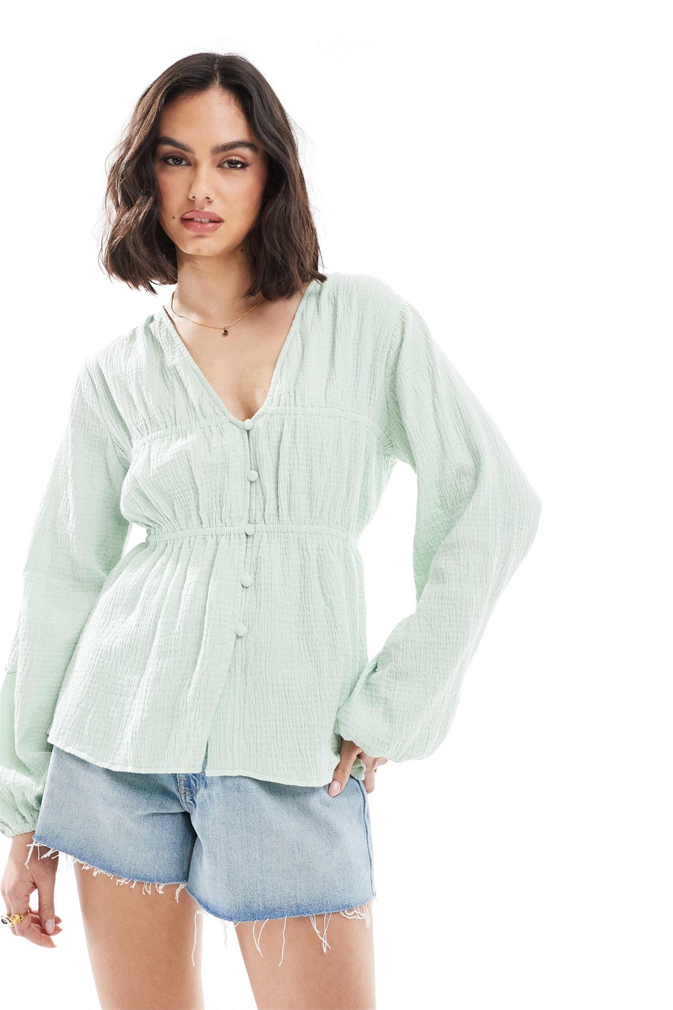 Блуза с длинными рукавами и застежкой на пуговицах спереди