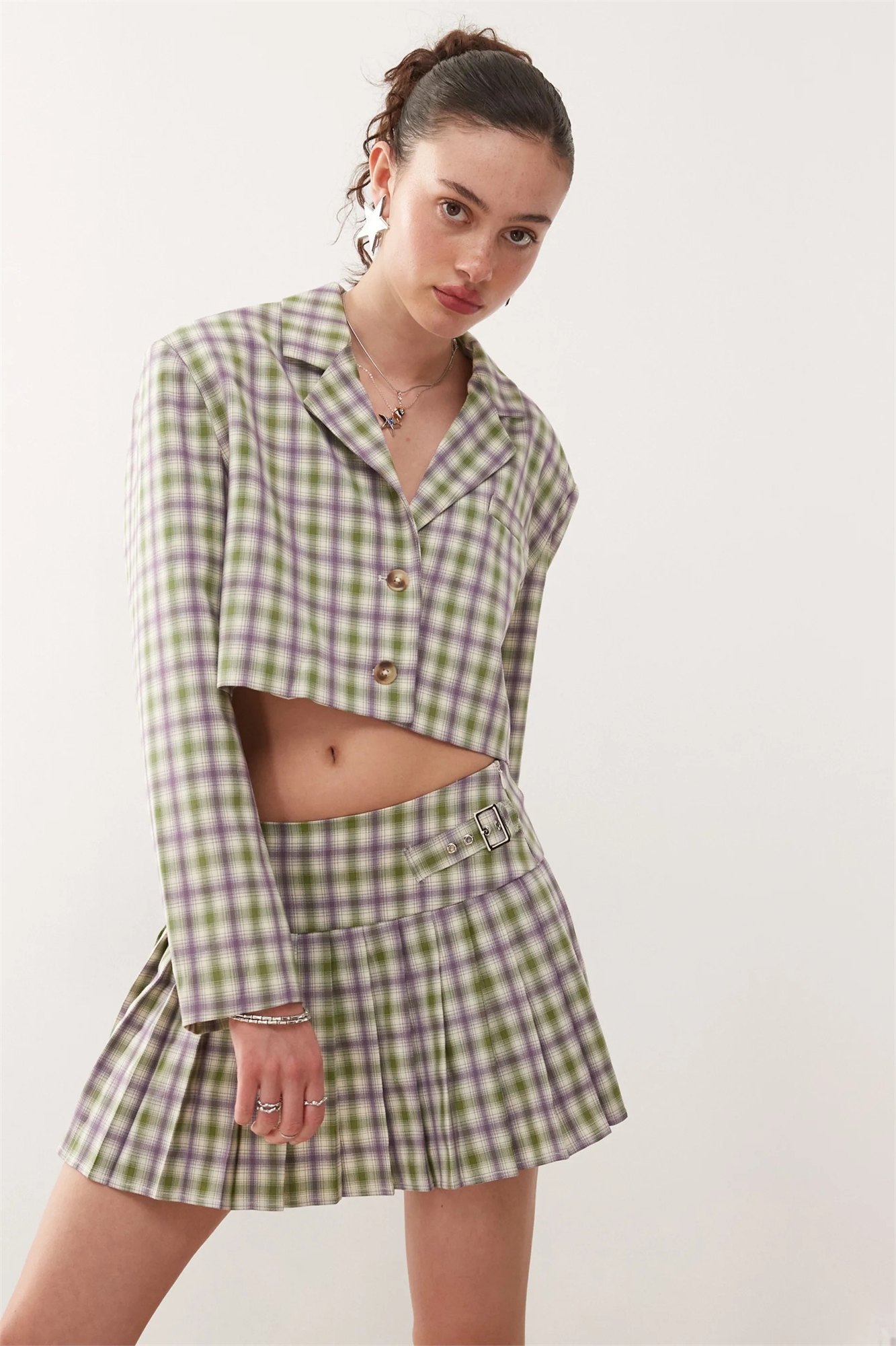 Мини-юбка в складку в стиле 90-х, скроенная по фигуре co-ord
