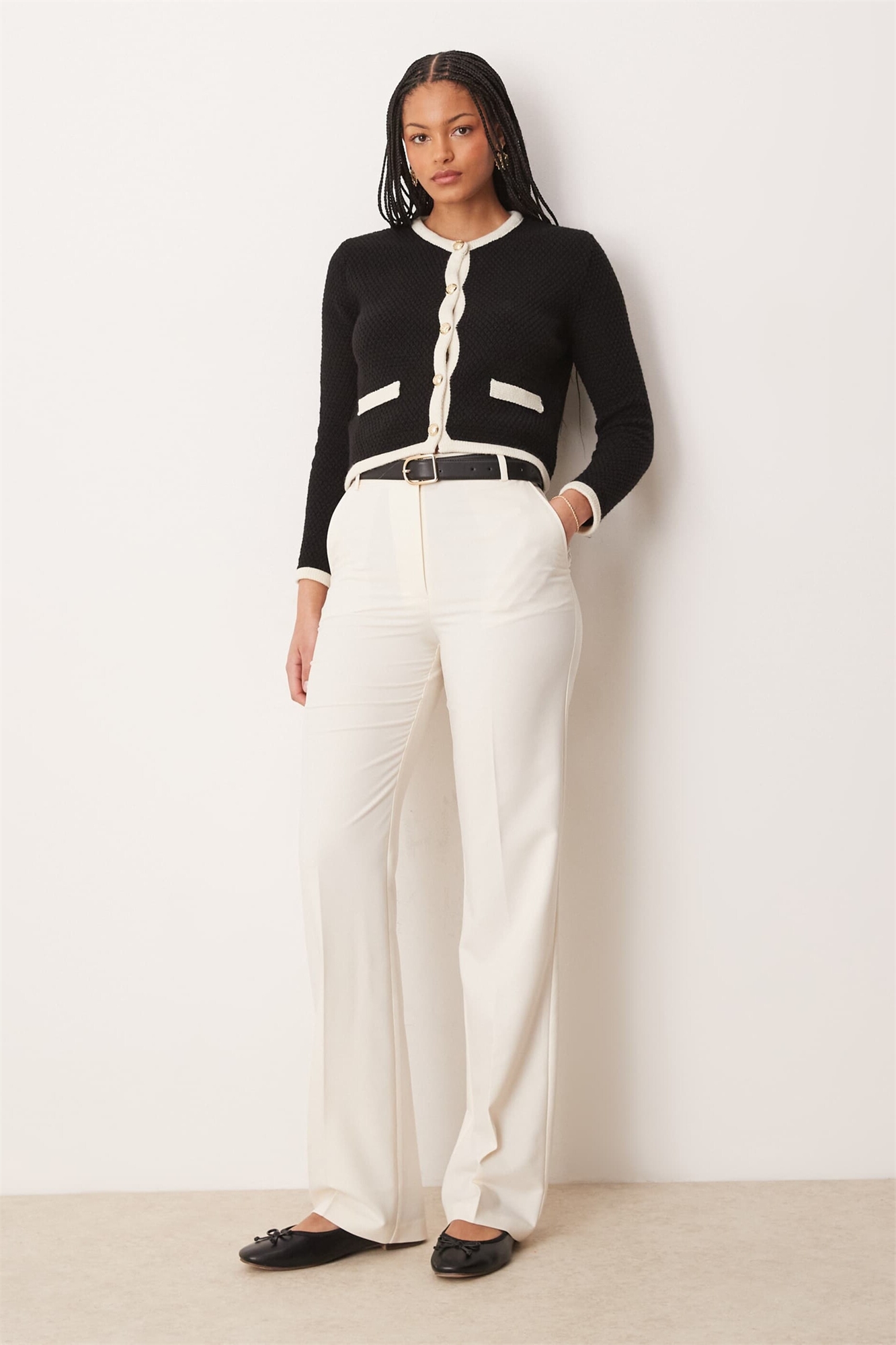 Высокие, узкие брюки прямого кроя