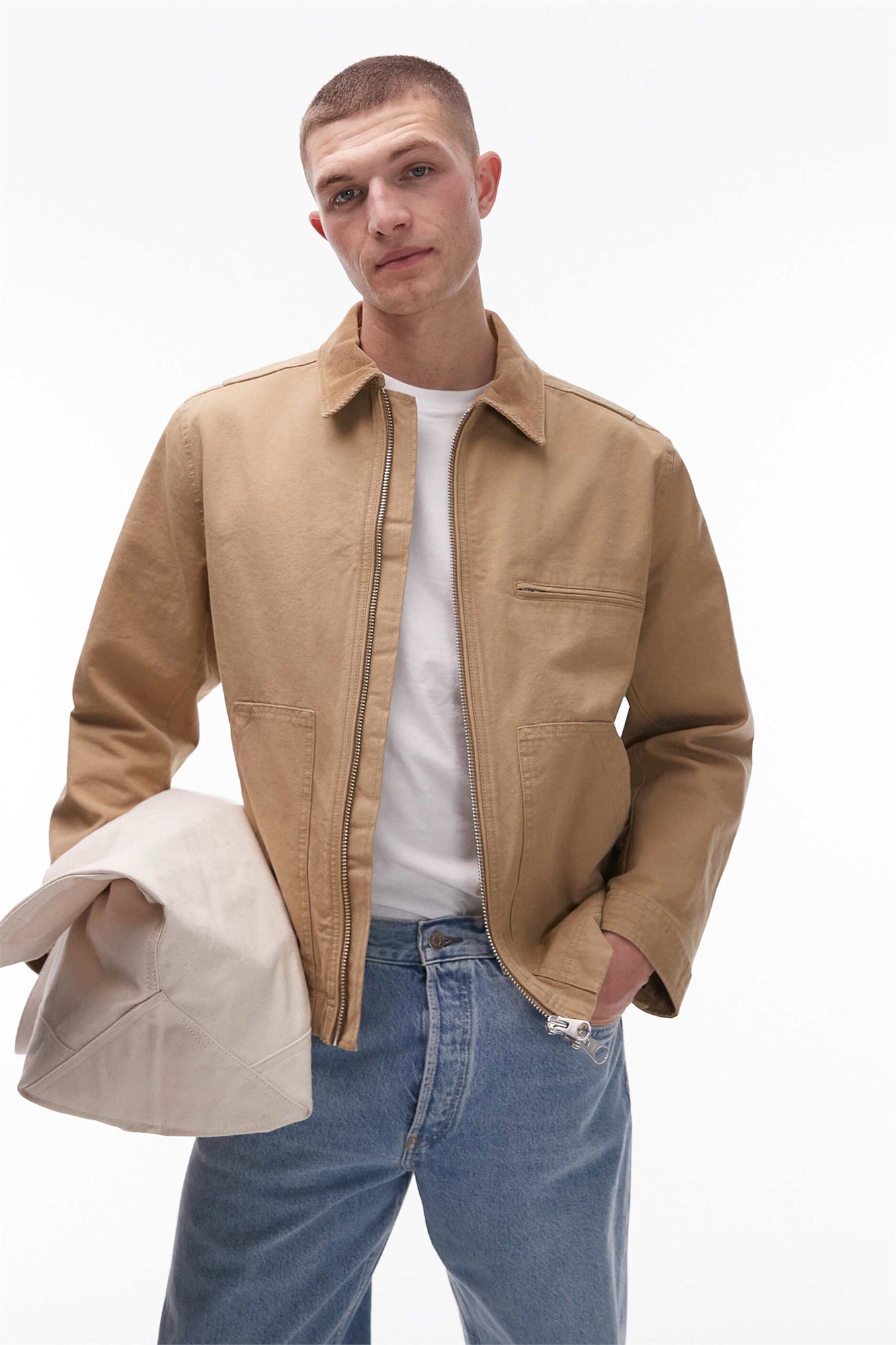 Рабочая куртка-тракер из канваса с застежкой-молнией спереди