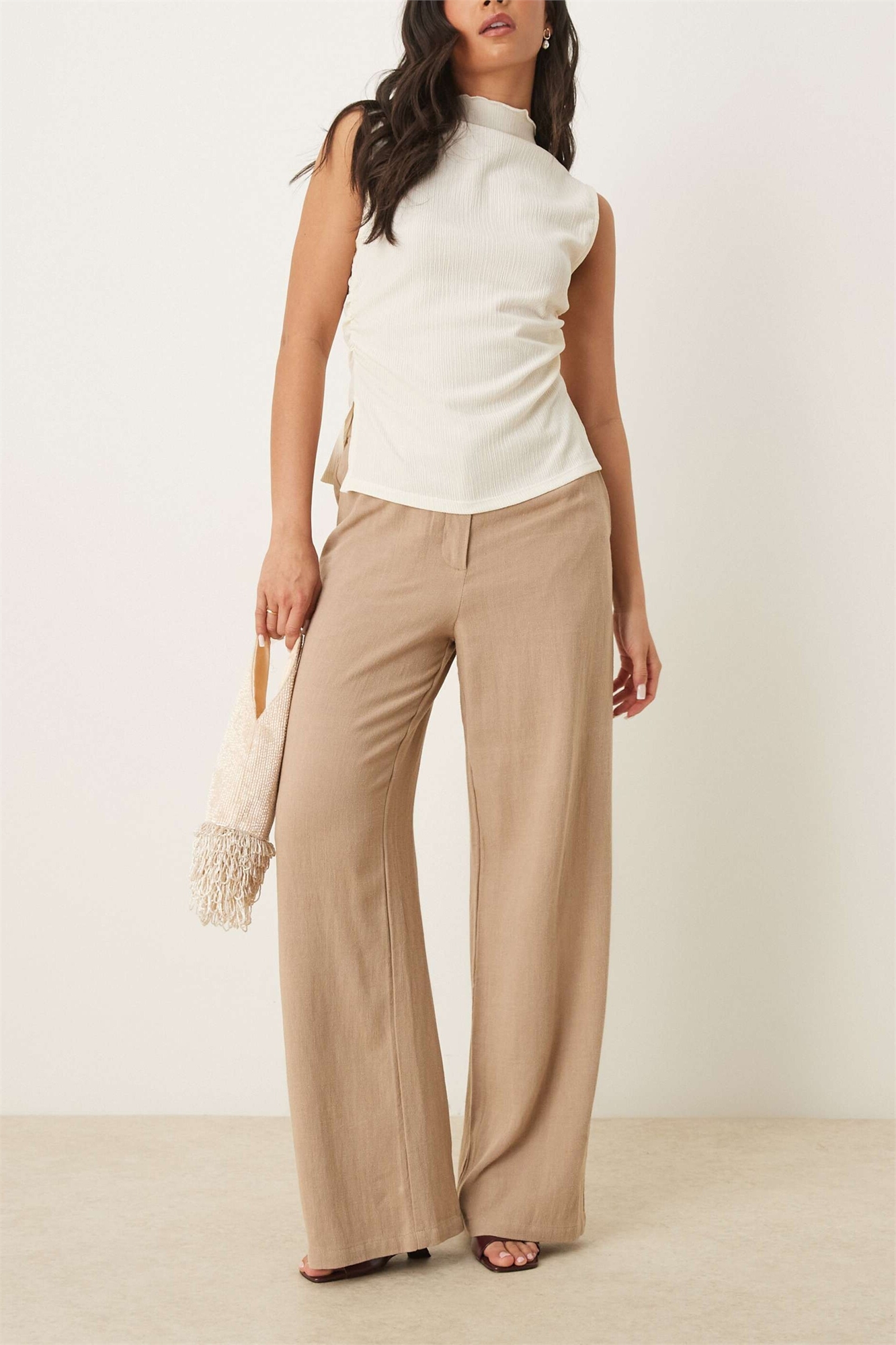 Изготовлено из льна, дышащей ткани с неровной текстурой. Верх: 72% вискоза, 28% лен.