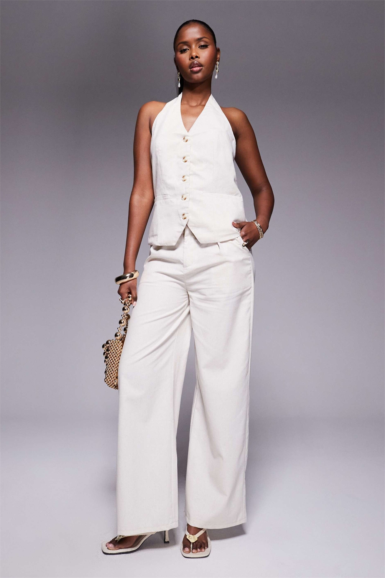 Комплект из жилета с застежкой на пуговицах и широких брюк