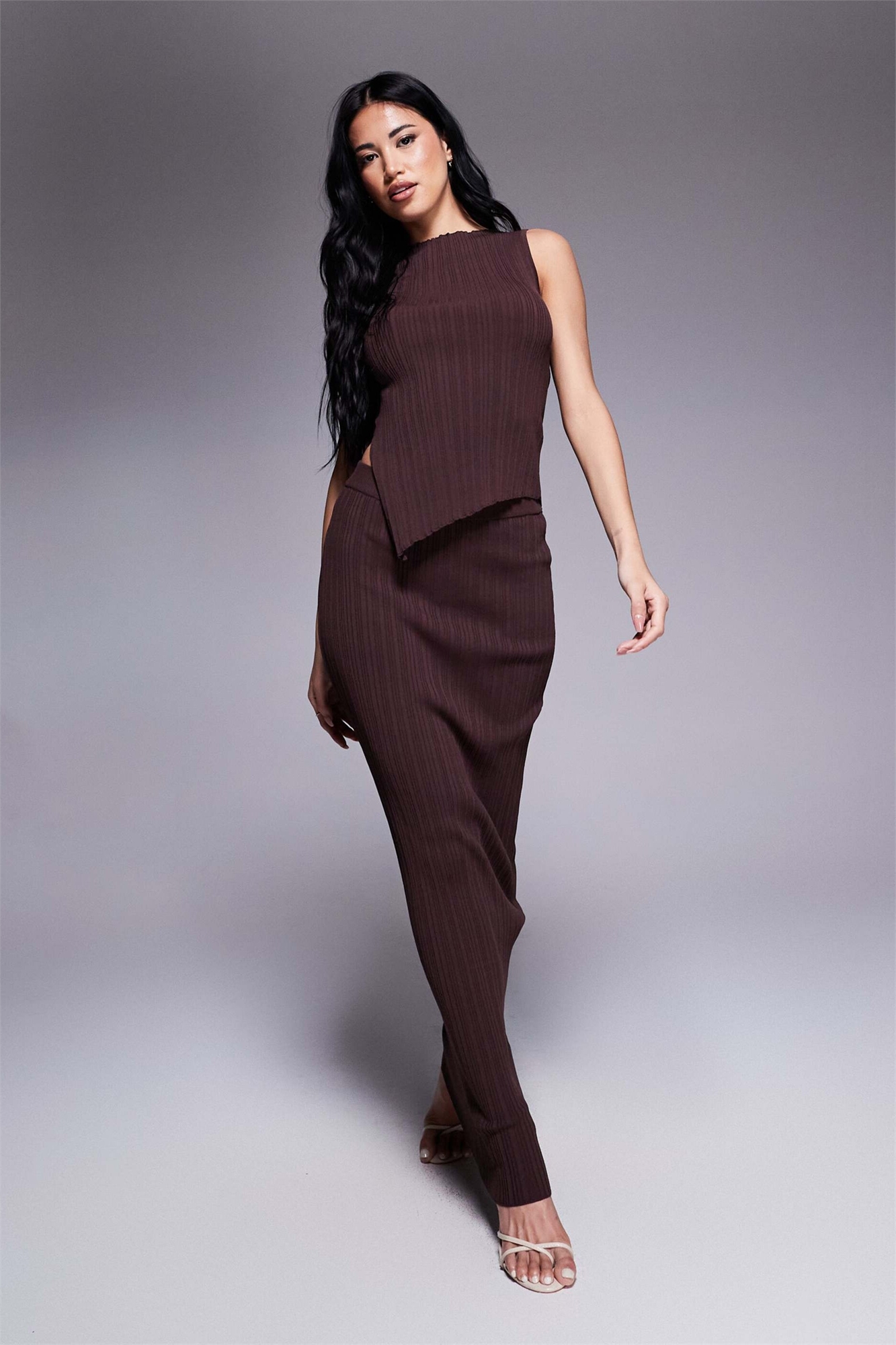 Комплект из асимметричного топа без рукавов с ребристой текстурой и юбки макси