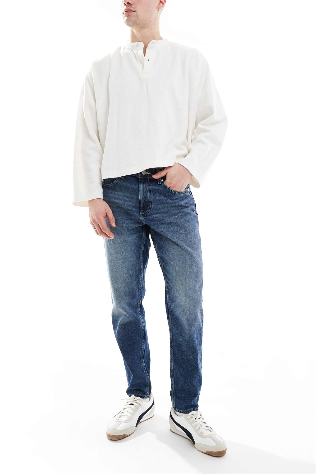 Неэластичный деним: темно-синий цвет Основной материал: 100% хлопок.