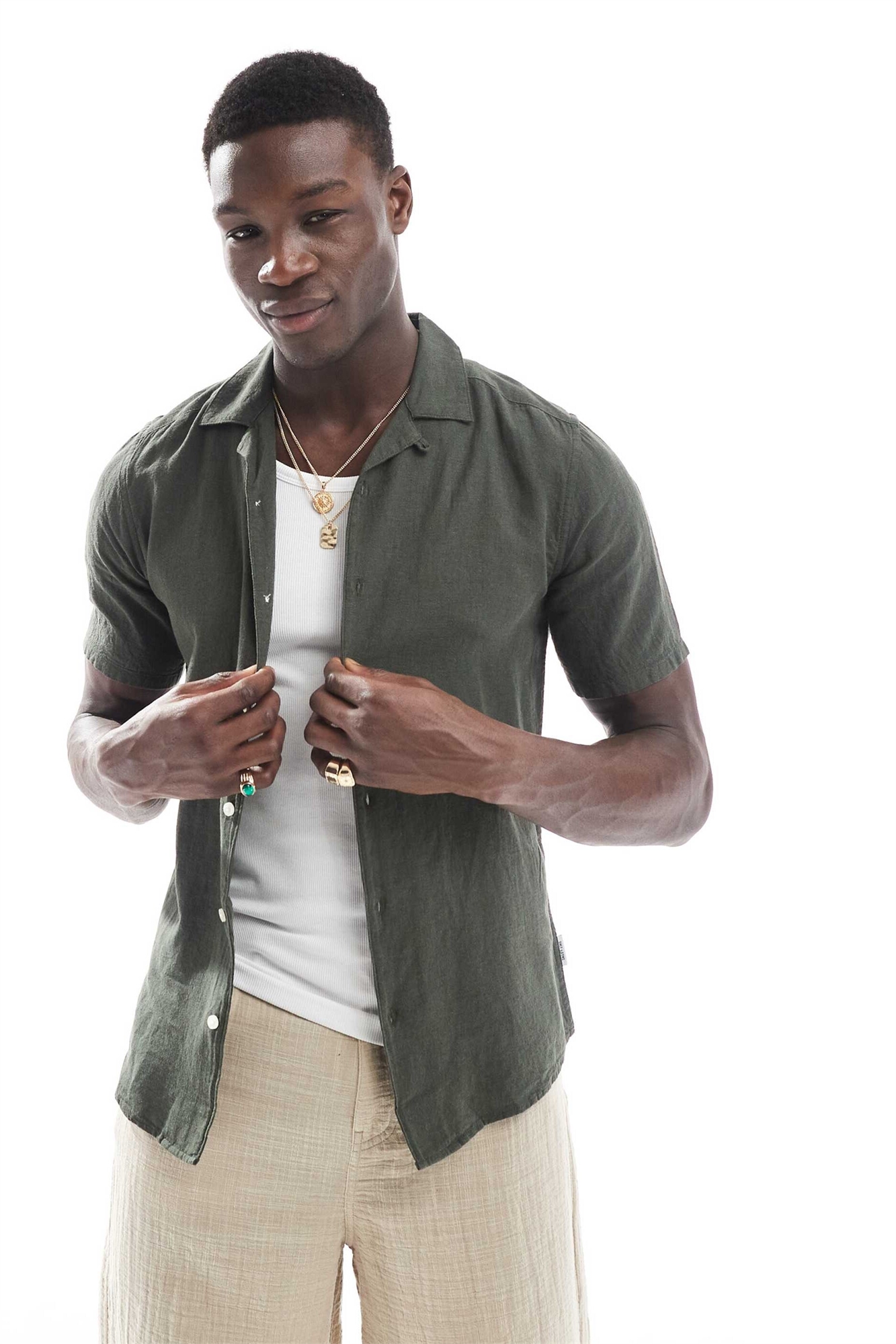 Рубашка с воротником-ревером из смешанного льна
