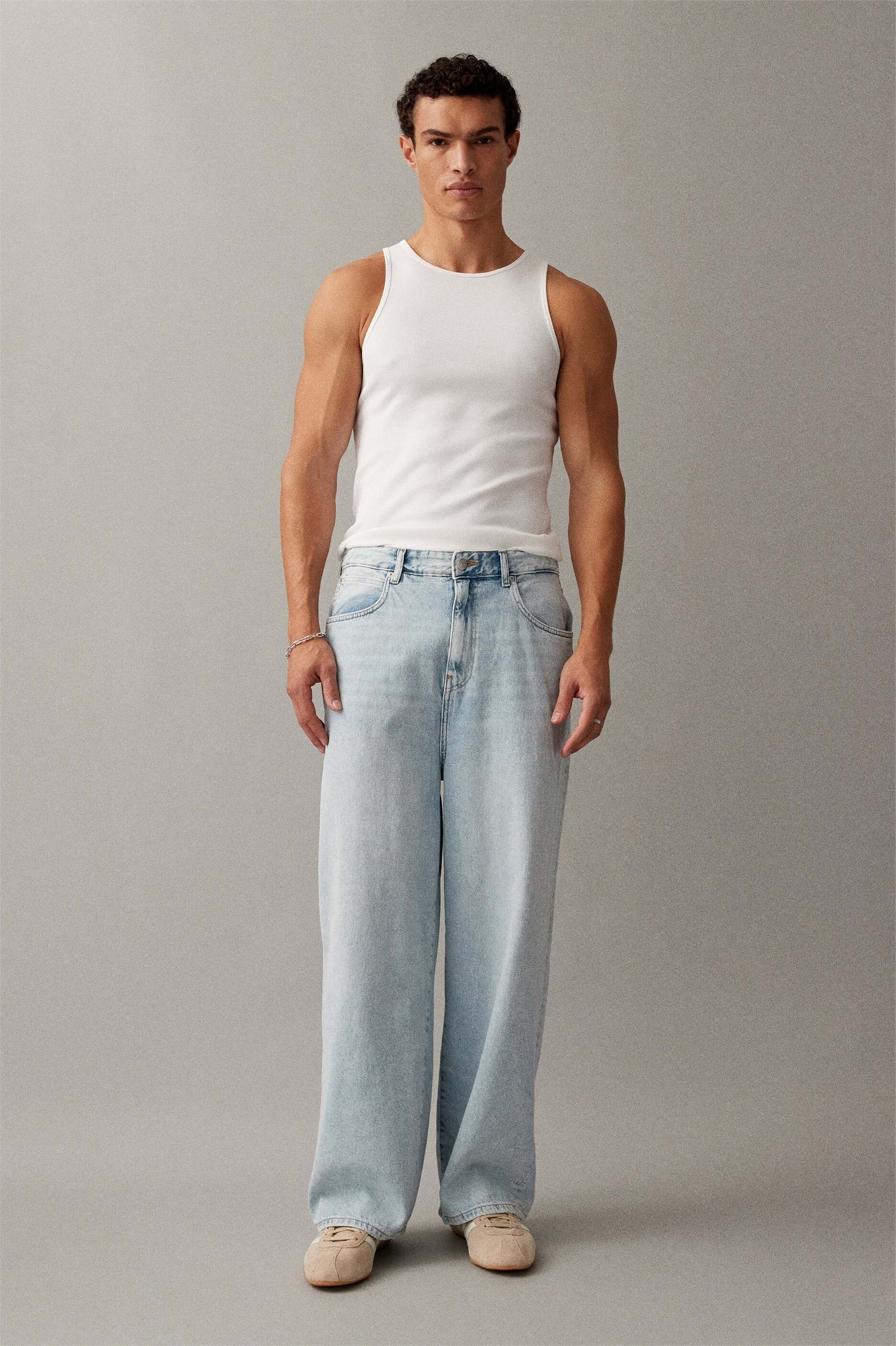 Джинсовая ткань средней плотности, неэластичная: светло-голубая отбелка Основной материал: 100% хлопок.