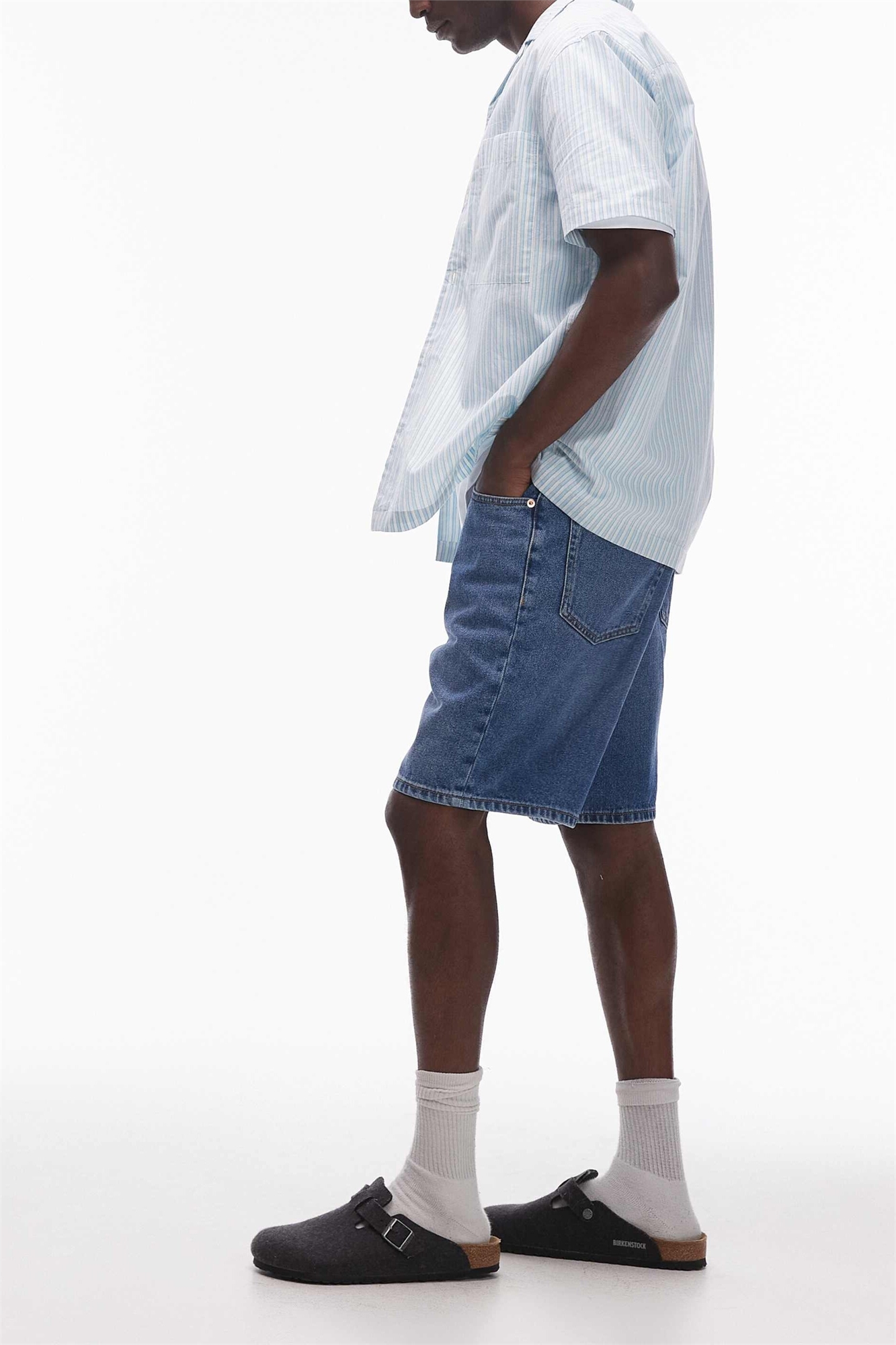 Неэластичный деним: средне-синий оттенок Основной материал: 100% хлопок.
